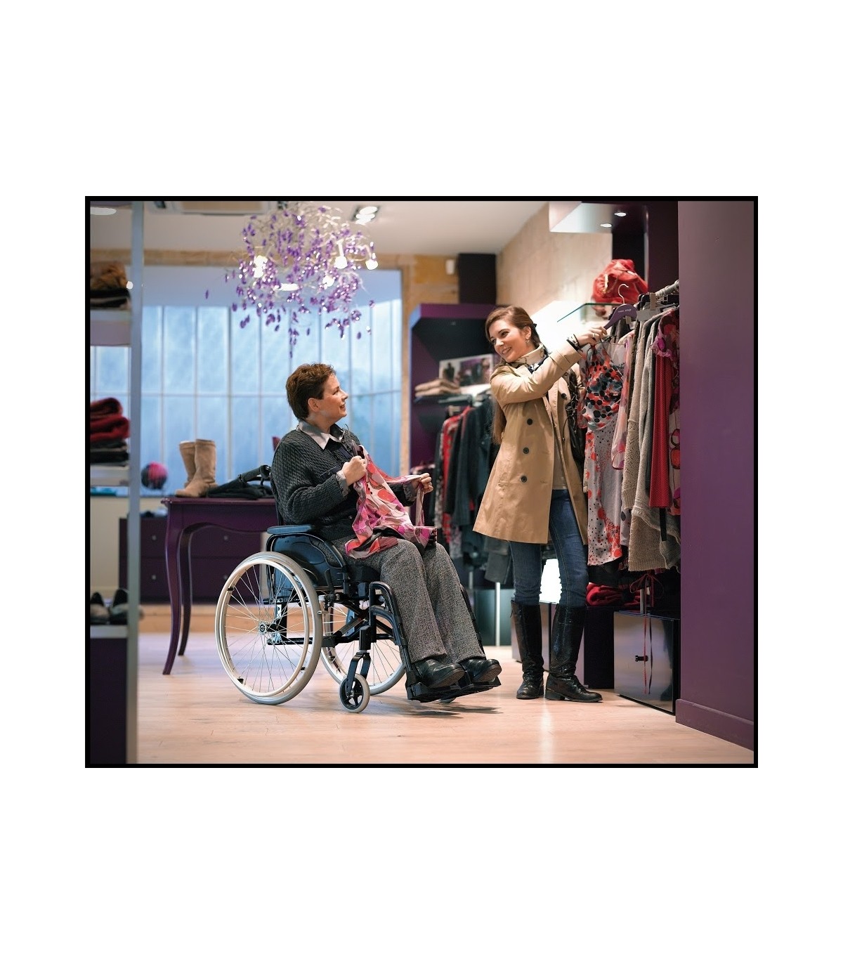 Il est muni de roues arrière de 24 pouces à démontage rapide avec mains courantes en aluminium, ainsi que de roues avant de 6 pouces, assurant une bonne maniabilité aussi bien en intérieur qu’en extérieur.