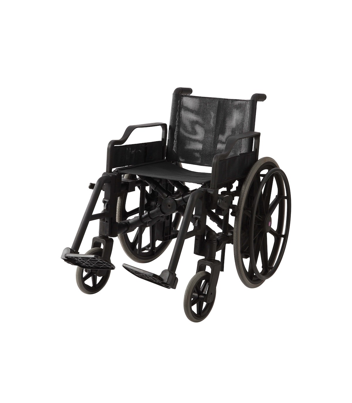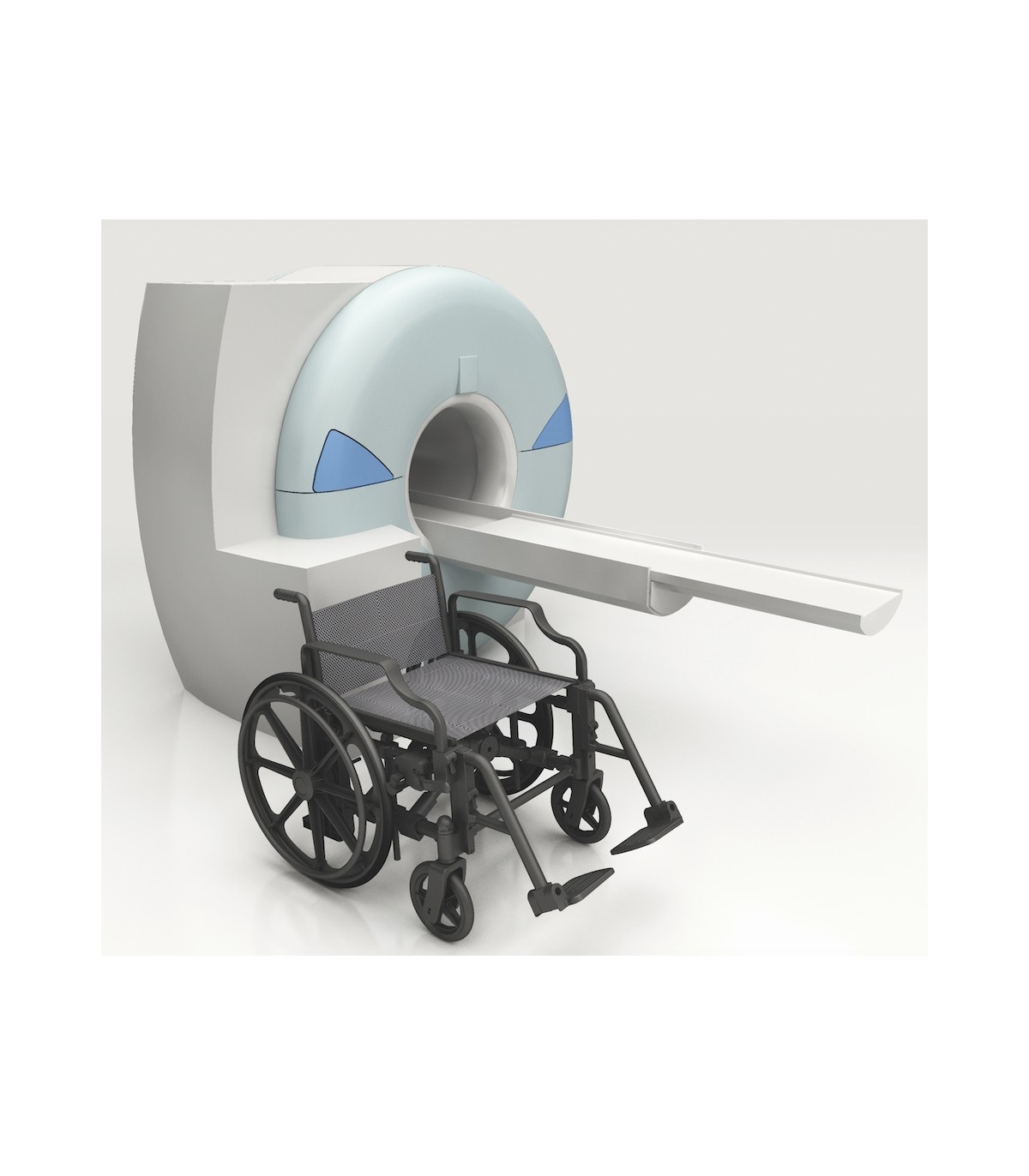 Ce fauteuil roulant handicapé manuel est fabriqué en matériaux plastiques et composites, sans aucune pièce métallique, ce qui le rend totalement non magnétique et compatible avec les environnements IRM ou sécurisés.