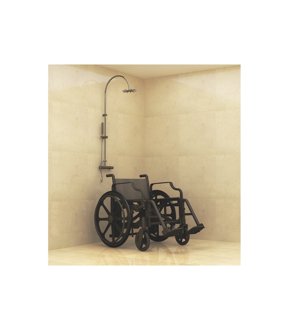 Il est également doté d’accoudoirs et de repose-pieds amovibles, facilitant les transferts et améliorant le confort d’utilisation au quotidien.