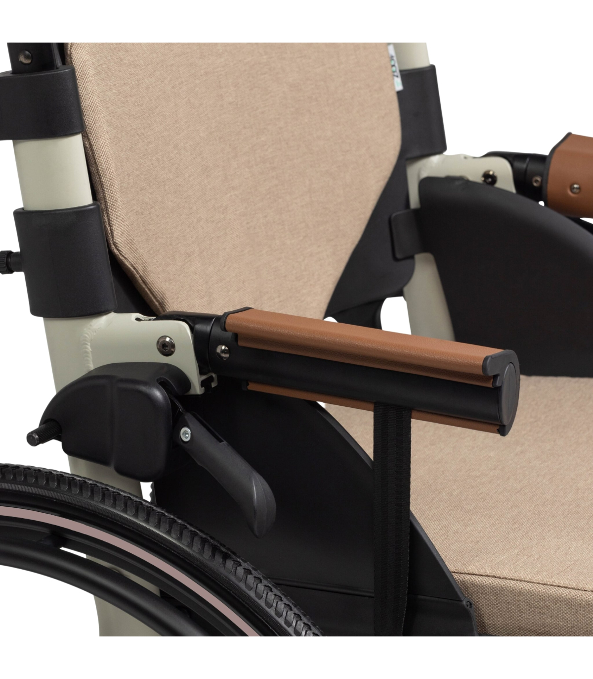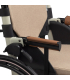 Le fauteuil roulant manuel pliant Zoof est équipé d'accoudoirs rabattables pour permettre à l'utilisateur de faire glisser facilement le fauteuil vers la table. Cette option permet également de faciliter les transferts du patient.