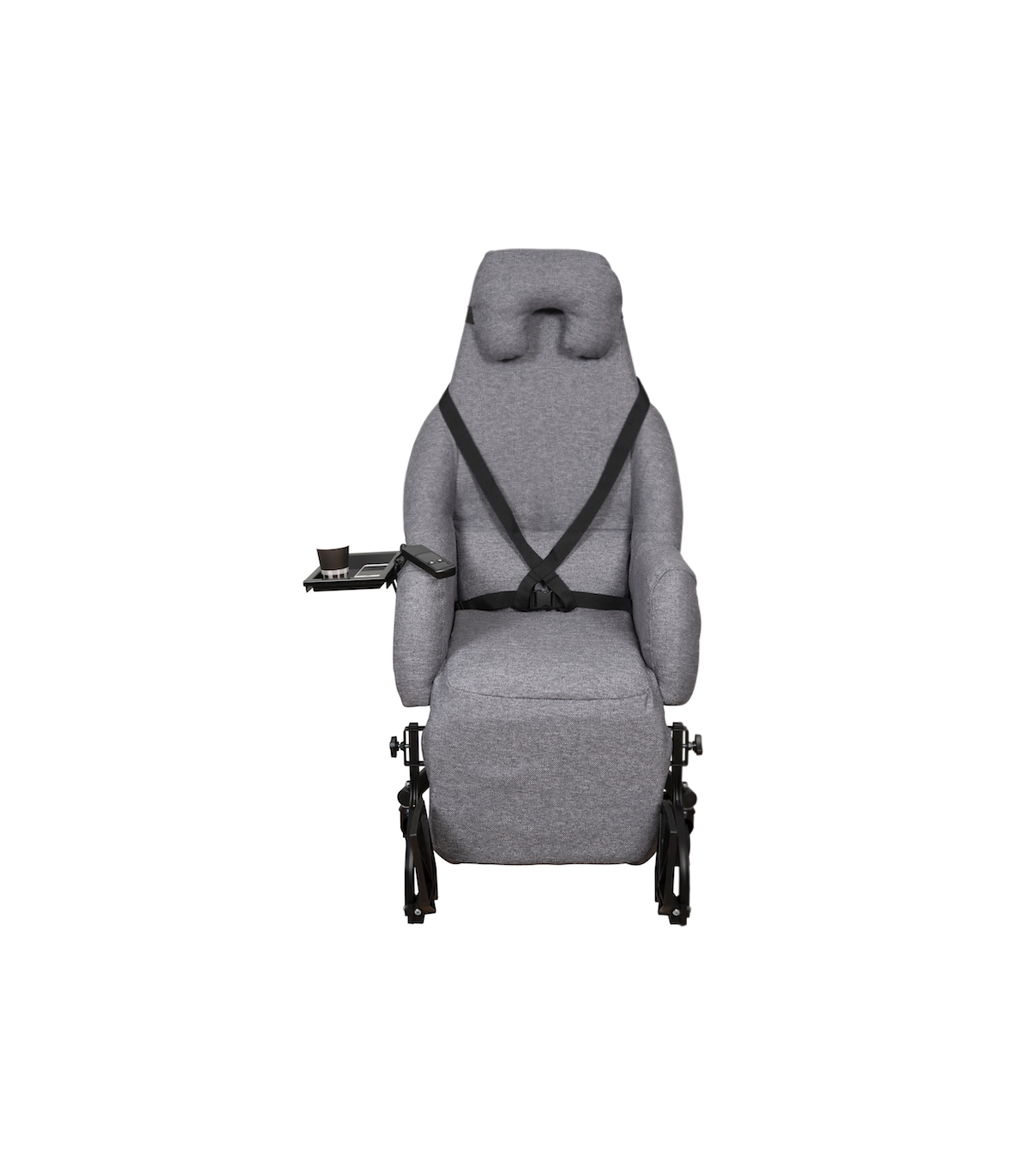 Il est livré avec un oreiller cervical, un harnais 4 points et une tablette.