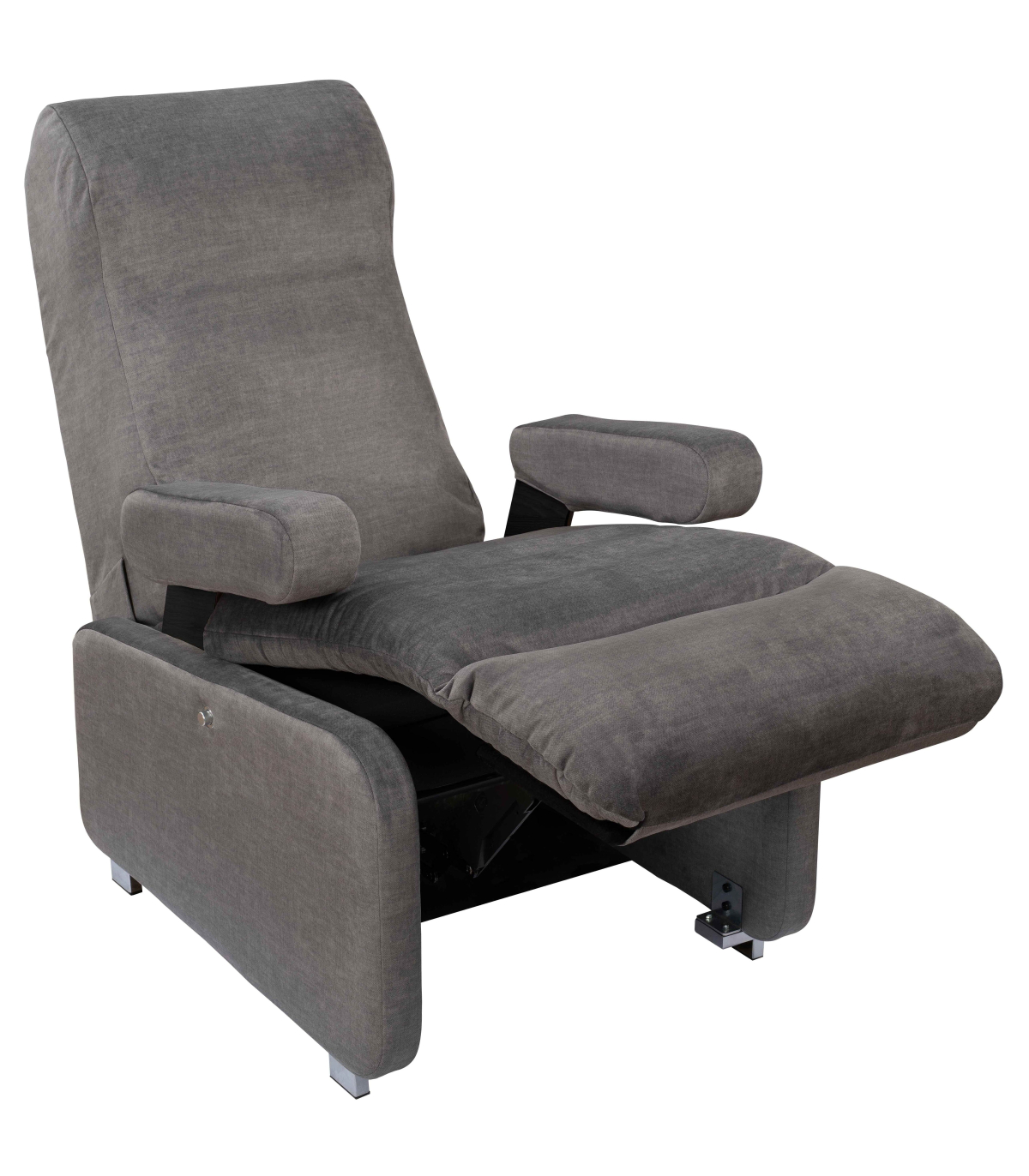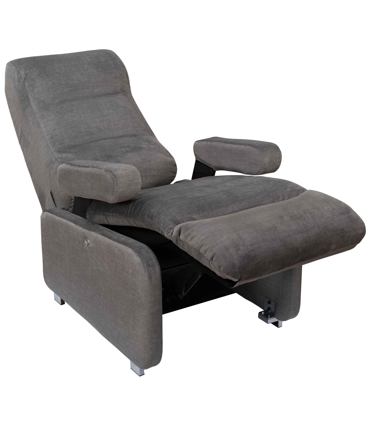Le fauteuil de confort médical Althea dispose d’un système d’inclinaison manuelle permettant trois positions de relaxation. En quelques gestes, vous ajustez la position du dossier et la hauteur des jambes, pour passer d’une assise classique à une position de repos profond. Le tout sans moteur, avec une mécanique fluide et durable.
