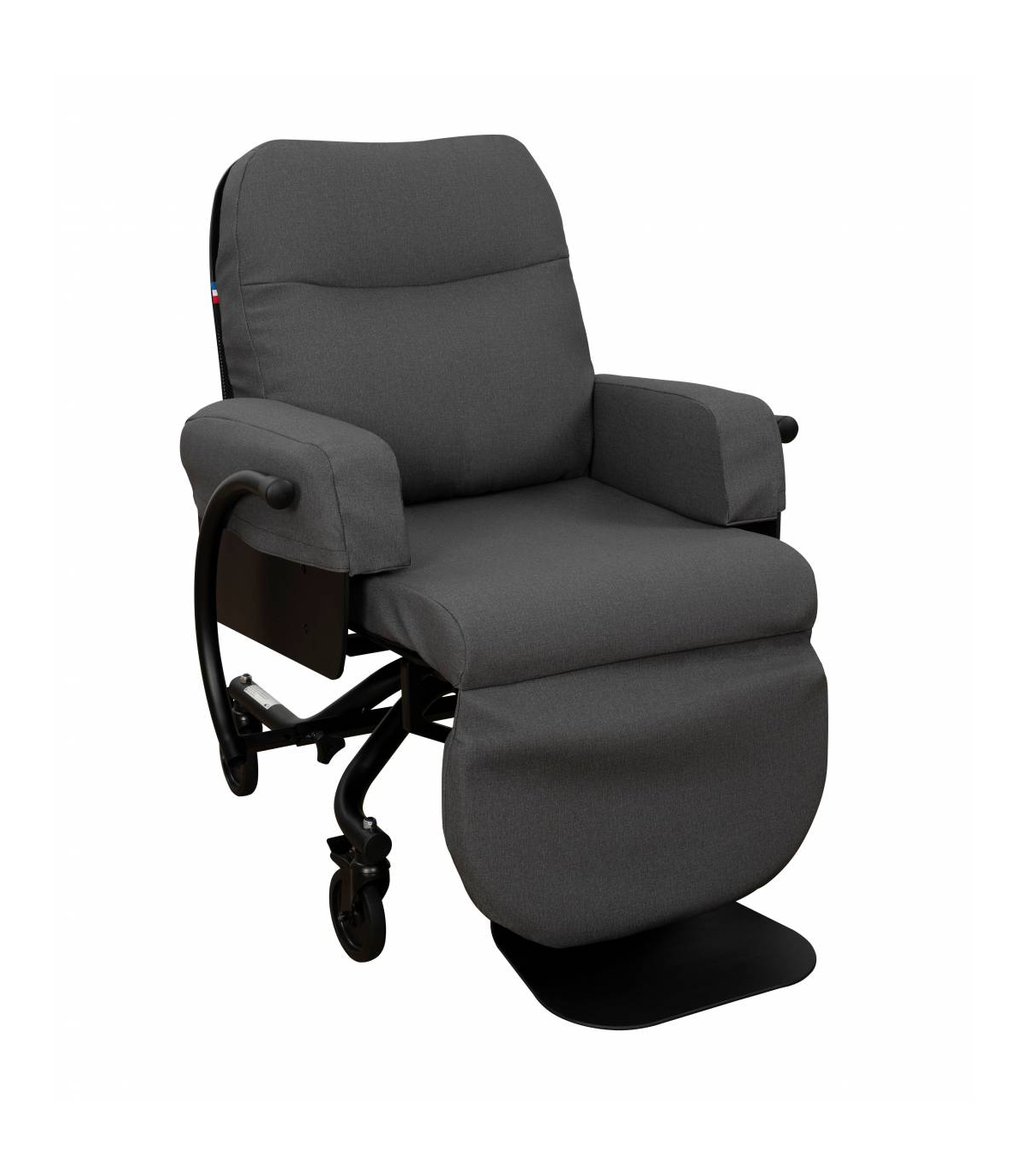 Son système d’inclinaison manuelle (deux positions) est simple d’utilisation, permettant à l’utilisateur d’adopter une position reposante sans effort, prolongeant ainsi son autonomie. Le repose jambes synchronisé suit naturellement l’inclinaison de l’assise pour un maintien optimal et relaxant.
