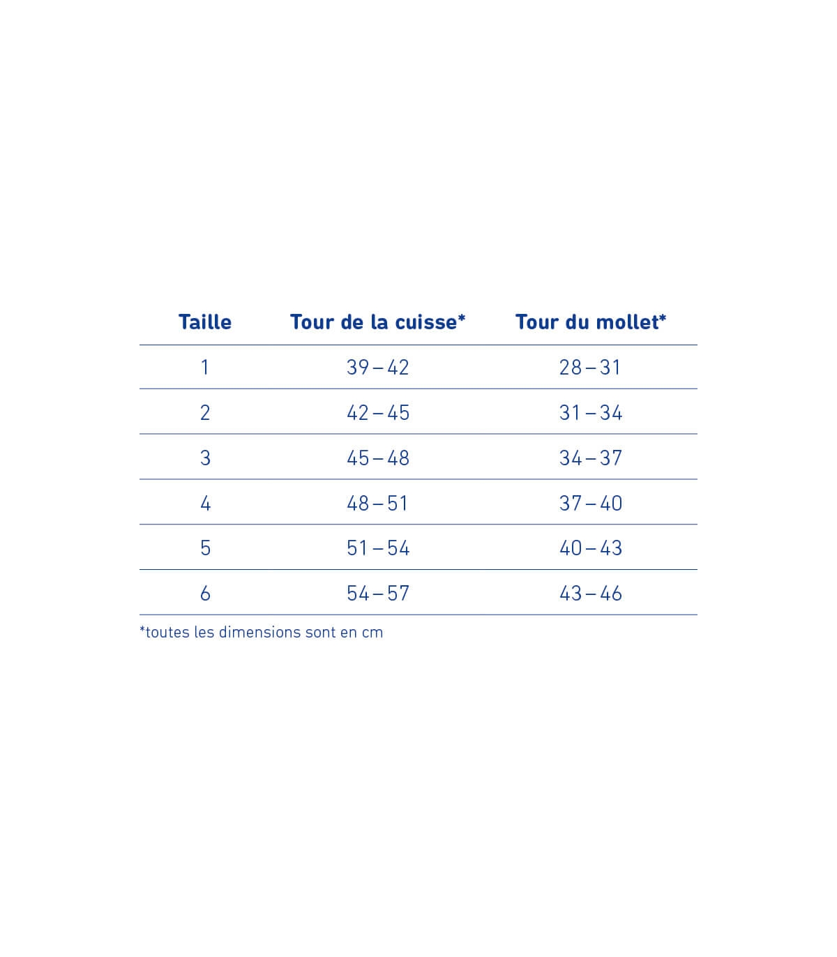 Taille Tour de la cuisse Tour du mollet