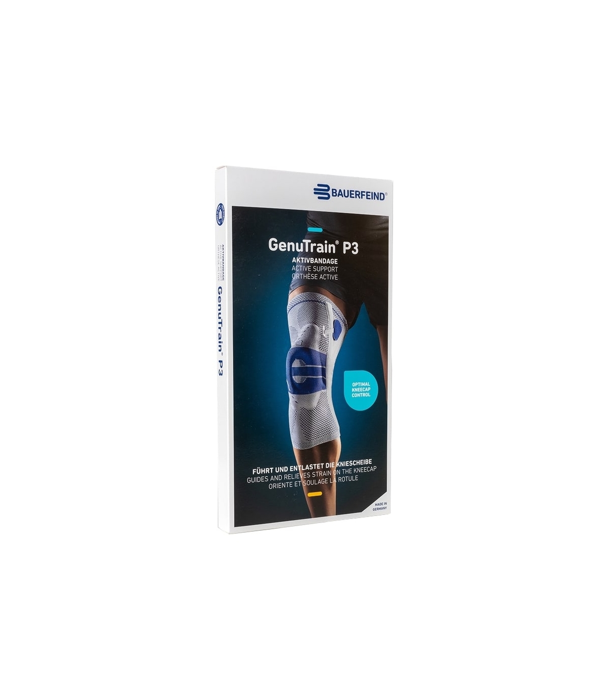 La genouillère médicale souple Genutrain P3 Bauerfeind est conçue pour stabiliser efficacement la rotule, la recentrer, la guider dans son glissement naturel, et soulager les douleurs antérieures du genou. Elle combine une compression de maintien, des éléments de guidage mécanique et des coussinets pour un massage localisé, le tout dans un tricot anatomique.