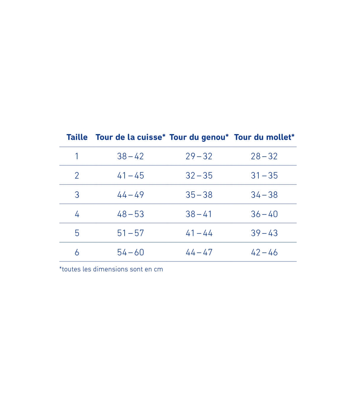 Taille Tour de la cuisse Tour du genou Tour du mollet