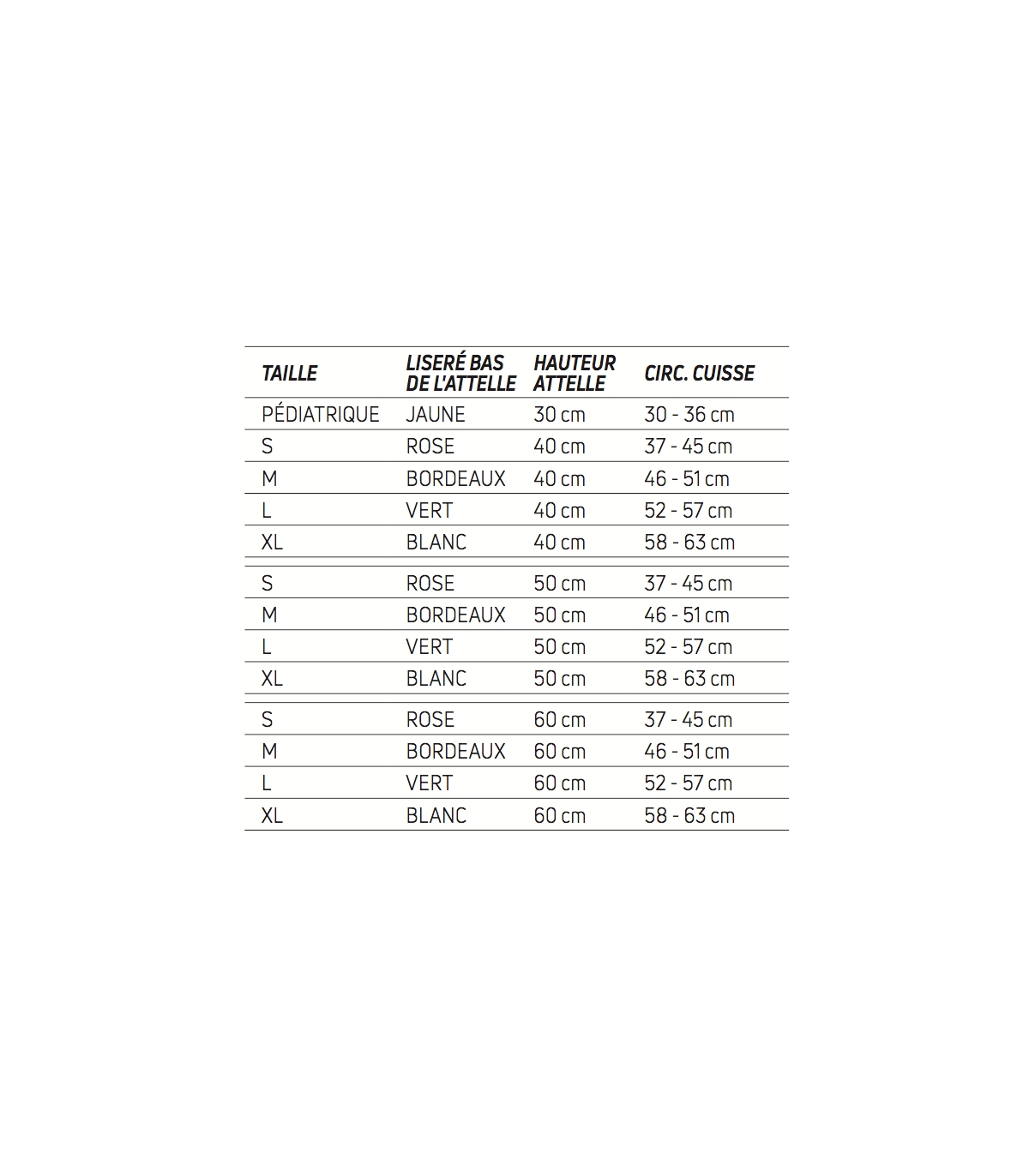 Désignation Hauteur Attelle Liseré bas de l'attelle Circ. Cuisse