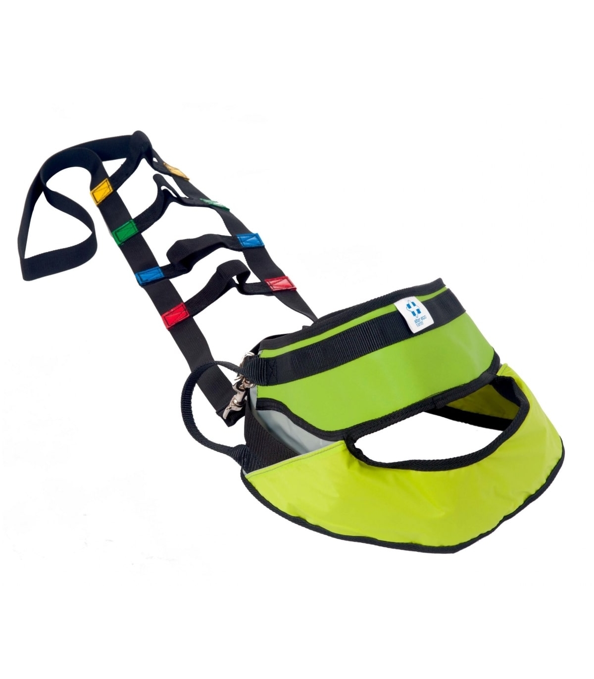 Il est équipé d’une base à roulettes avec système de freinage, permettant de déplacer facilement l’utilisateur sur de courtes distances en toute sécurité.