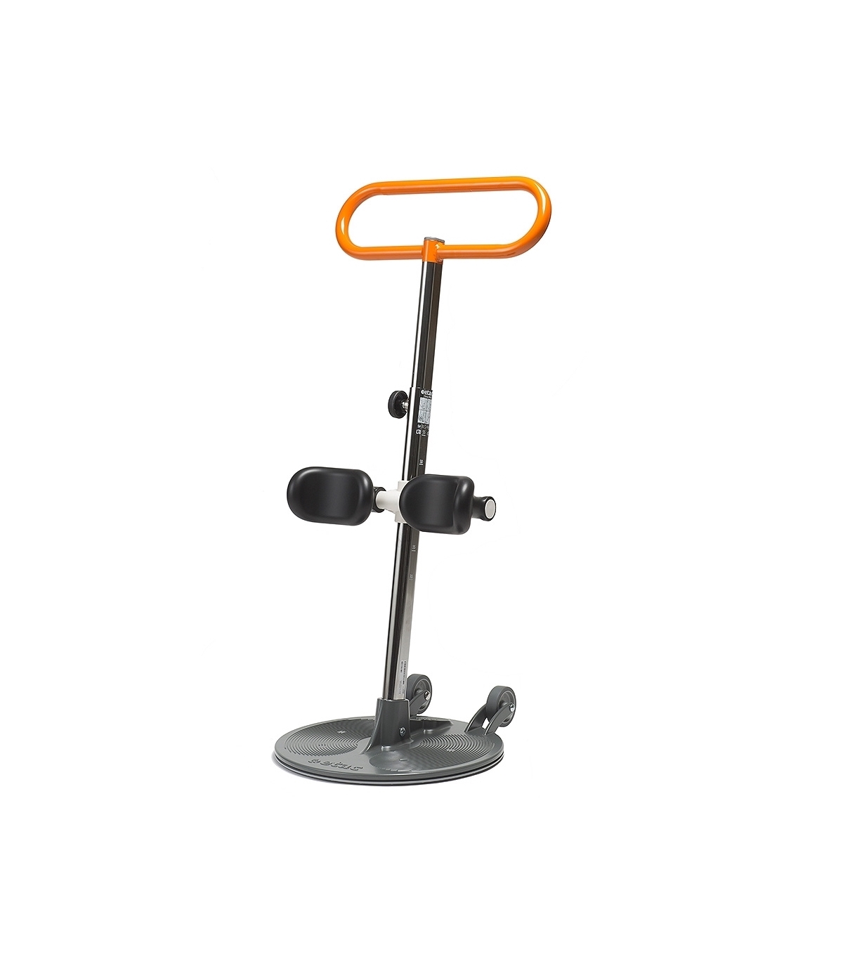 3. Une fois le patient verticalisé, il garde les mains sur la poignée orange. Aucun changement de position. Enlevez votre pied de la plateforme et faites pivoter Turner Pro afin de présenter l'utilisateur devant le nouveau support. |