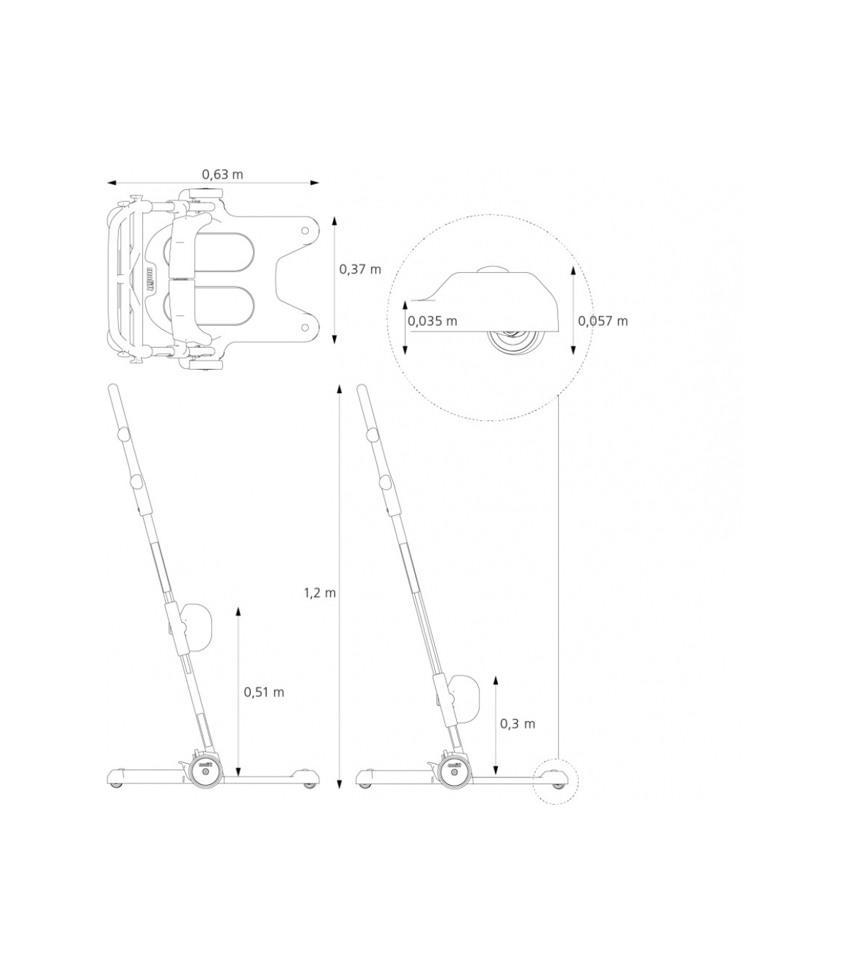 De plus, la plateforme de déplacement Raiser présente des dimensions compactes de 54 cm de largeur, 63 cm de profondeur et 120 cm de hauteur, adaptées à une utilisation dans des espaces restreints.