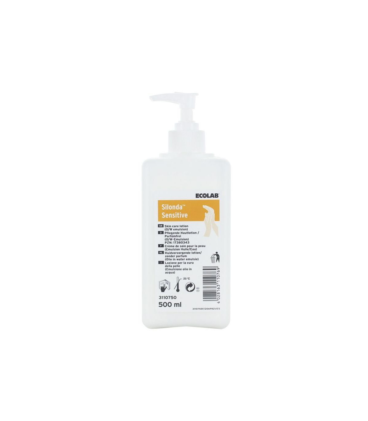 La crème conçue pour le soin des mains comporte une contenance de 500 ml. En outre, pour faciliter son utilisation la crème Silonda Sensitive est munie d'une pompe.
