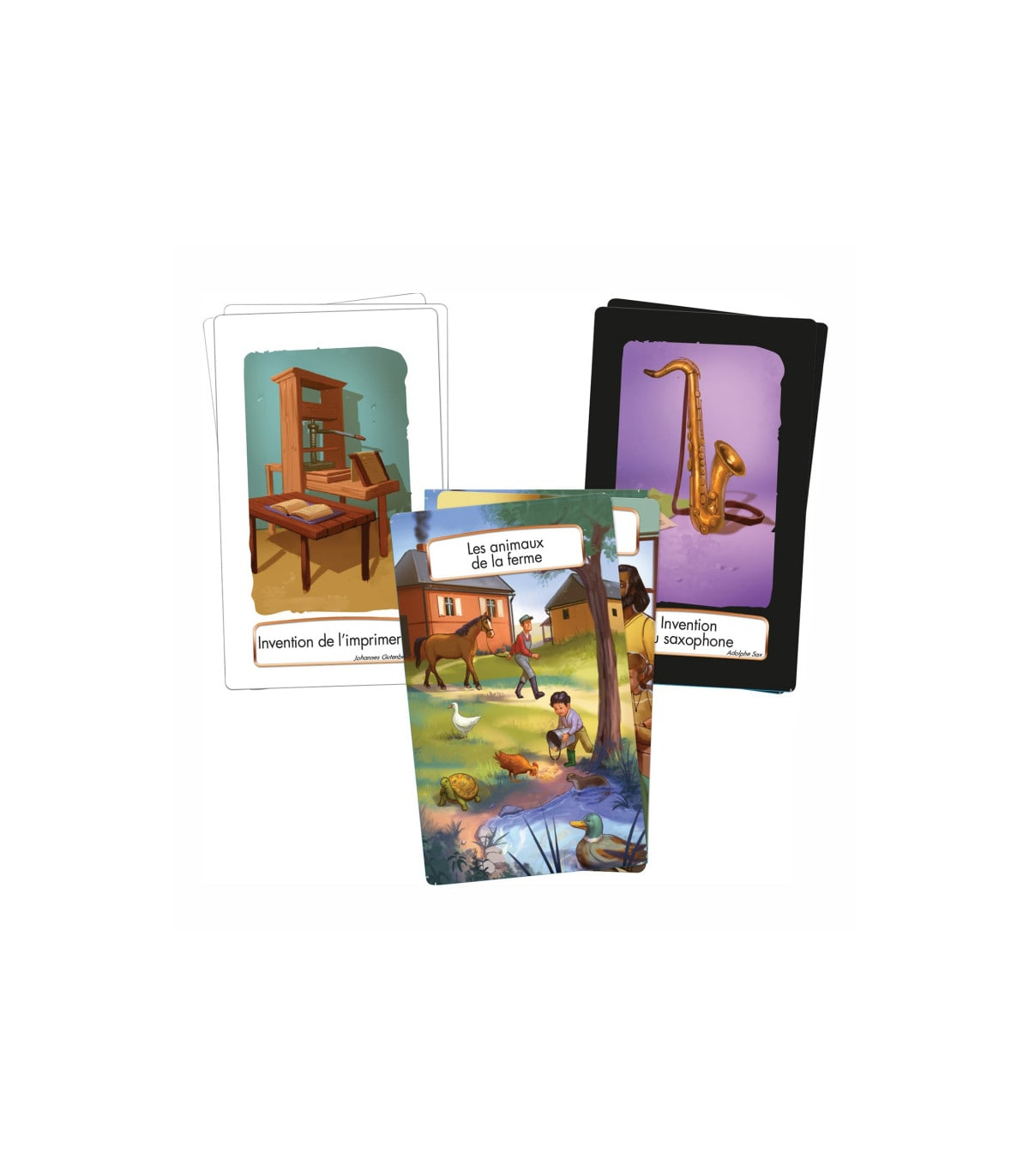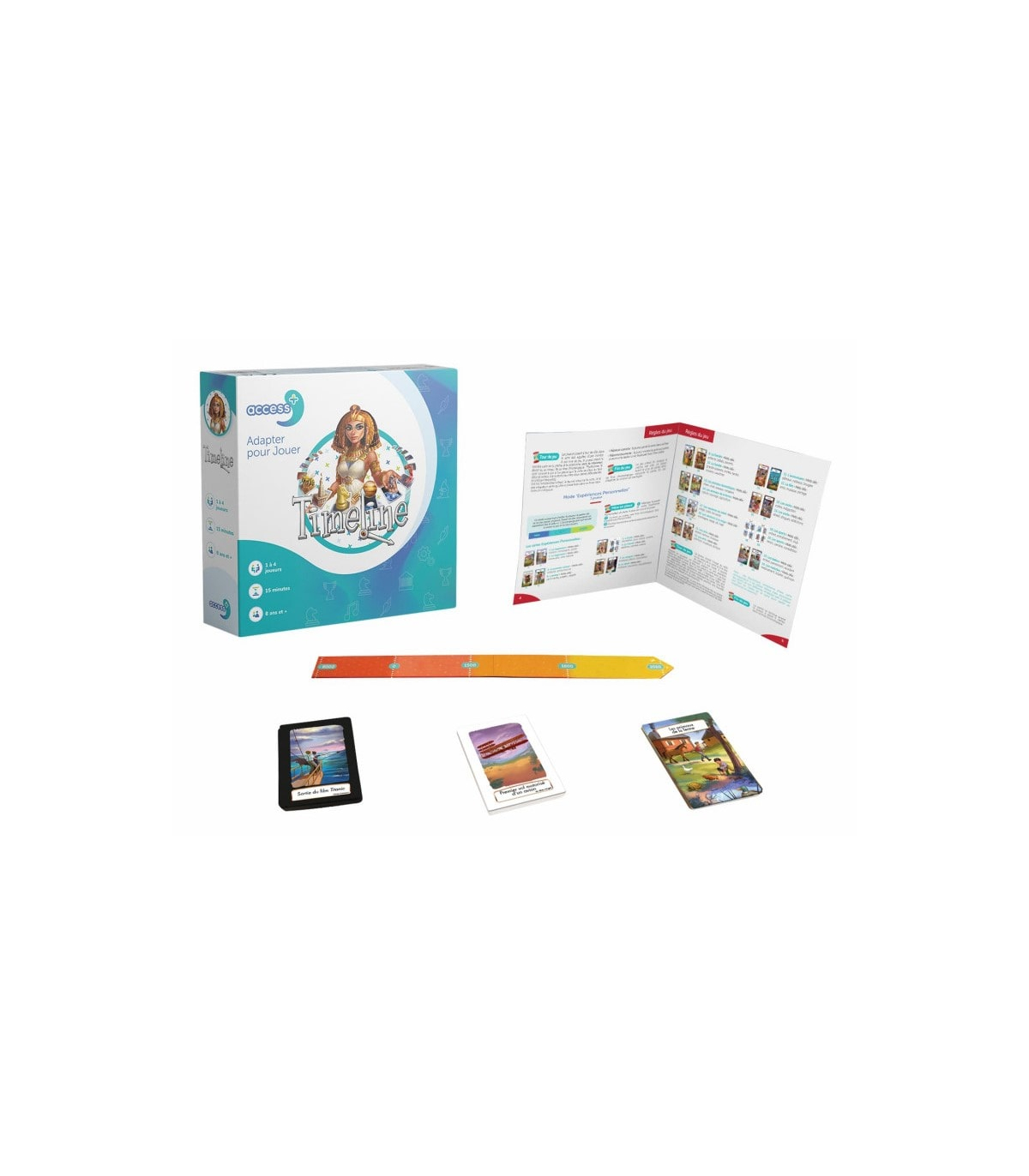 - 60 cartes, 4 frises chronologiques et 1 livre contenant les règles du jeu