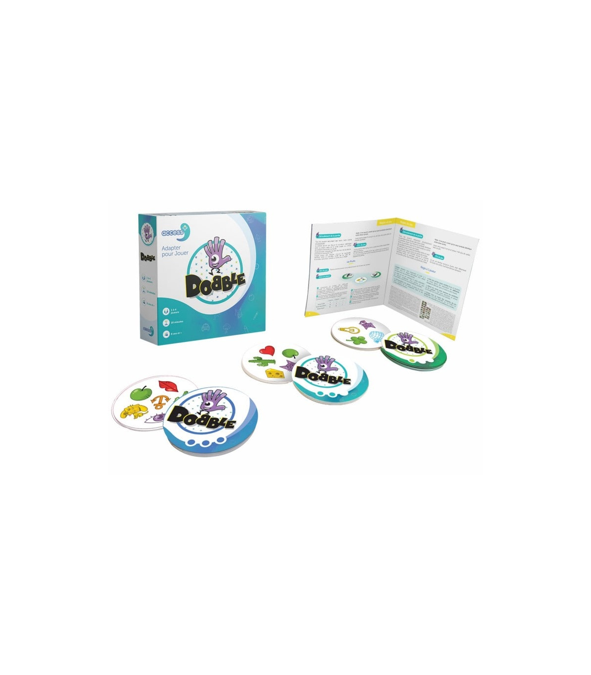 Dobble Access+ promet des parties rapides et pleines de fun (10 minutes en moyenne), parfaites pour les moments en famille ou entre amis. Facile à transporter et à sortir à tout moment, il saura animer vos soirées et vous fera vivre des moments de compétition bon enfant ! Pour faciliter la compréhension des règles, un livret est inclus avec les 65 cartes.