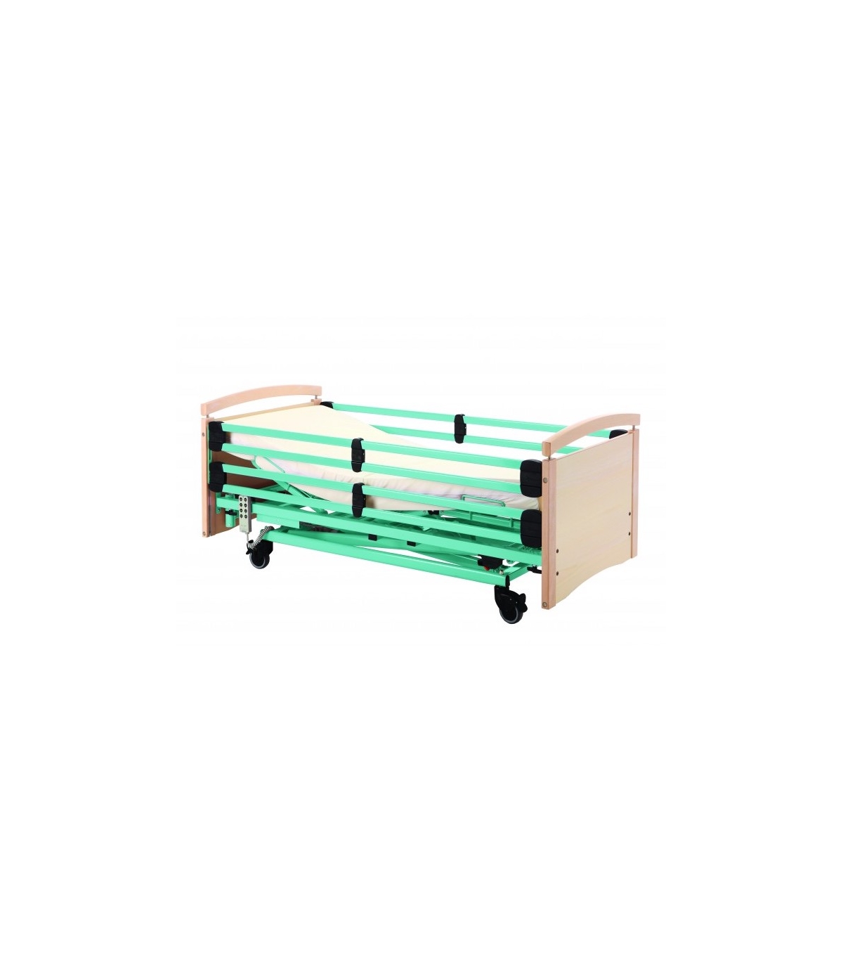Les commandes simples et verrouillables du lit médical permettent une utilisation facile et sécurisée, tout en évitant les manipulations involontaires par l’enfant.