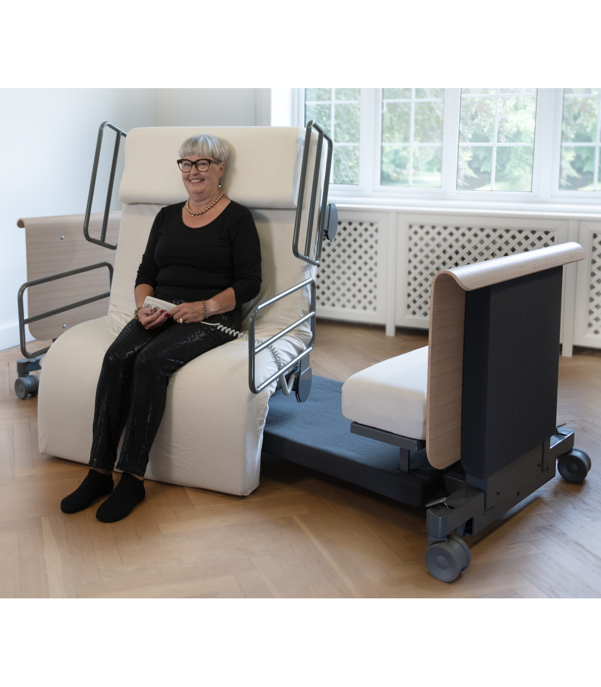 La télécommande ergonomique rend l’utilisation très facile, avec des touches claires pour passer en « Position fauteuil » ou « Position sommeil ». Il est également possible d’enregistrer vos réglages favoris, qu’il s’agisse de la hauteur, de l’inclinaison du dossier ou des positions de sortie, oblique ou perpendiculaire, pour un confort parfaitement adapté à vos besoins.