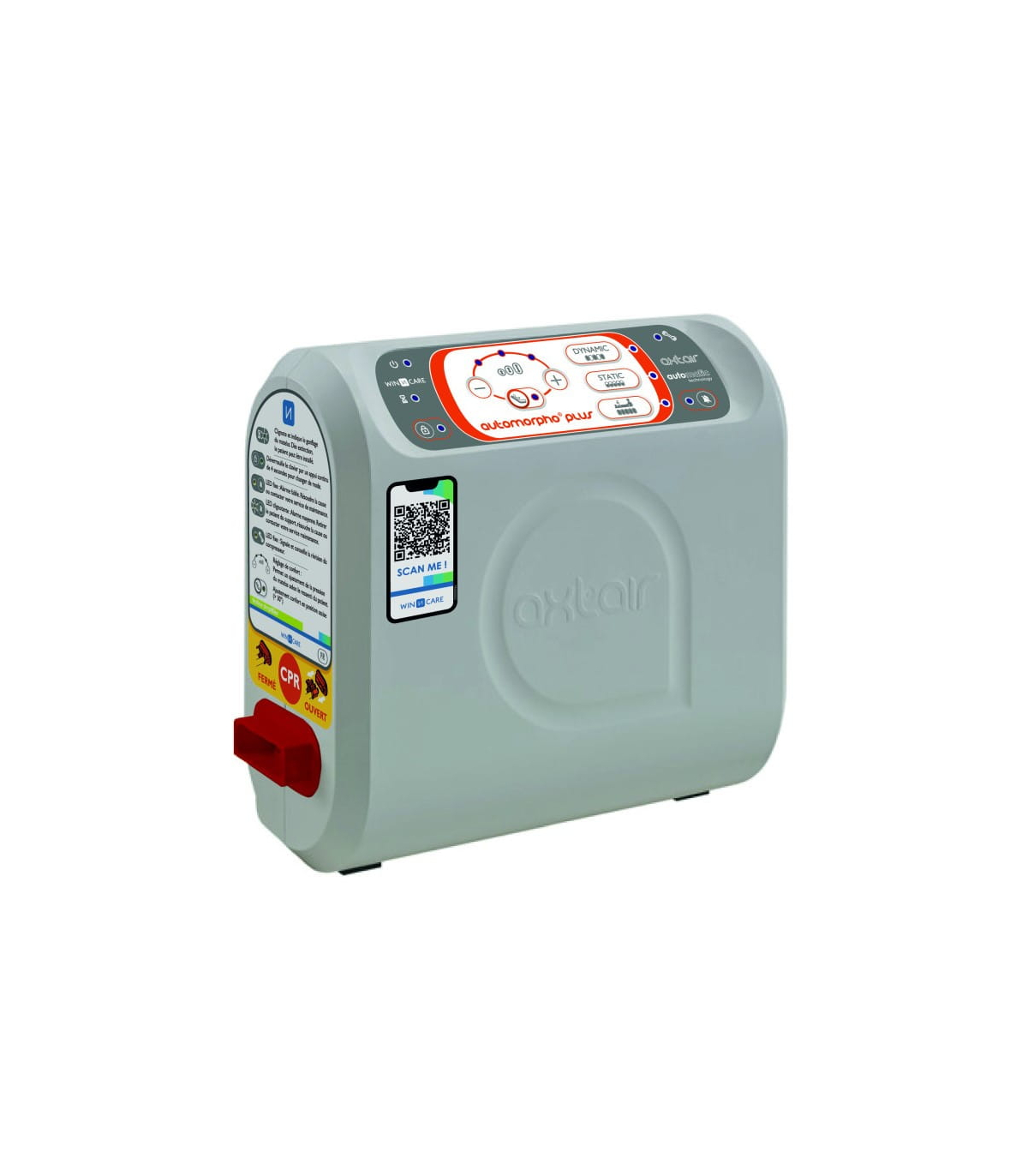 Le matelas à air anti escarres Axtair Automorpho Plus dispose d'une vanne CPR (Cardio Pulmonary Rescue) permettant de dégonfler le matelas en moins de 15 secondes en cas d'urgence et d'un bouchon de transport avec un système de mise en commun des 2 voies (autonomie de 8 heures).