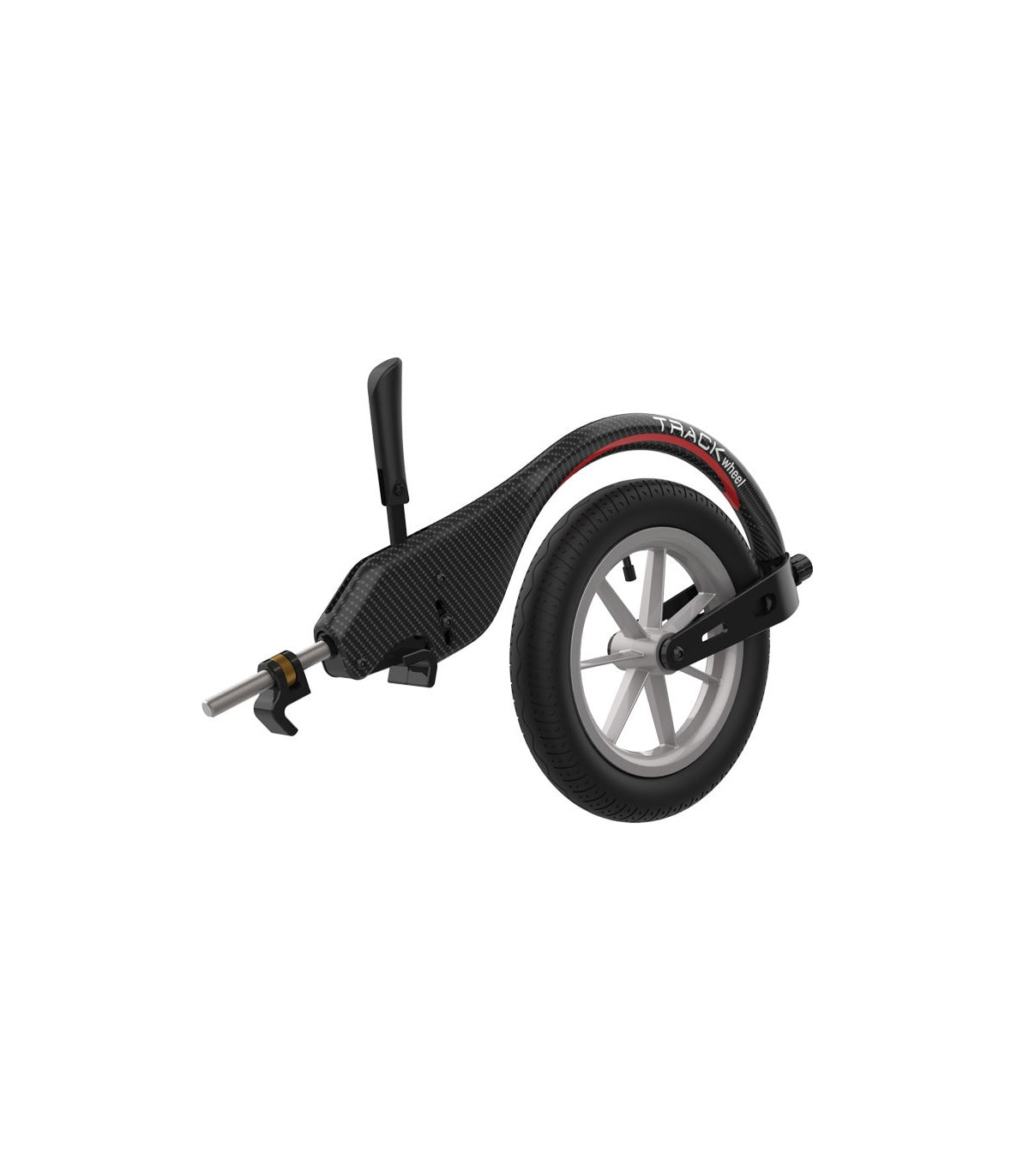 Grâce à sa fabrication en carbone, la cinquième roue Track Wheel pour fauteuil roulant manuel et électrique est très légère puisqu'elle pèse seulement 2,6 kg pour le modèle simple et 4,5 kg pour le modèle double.