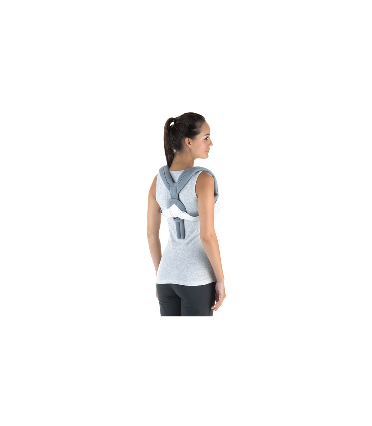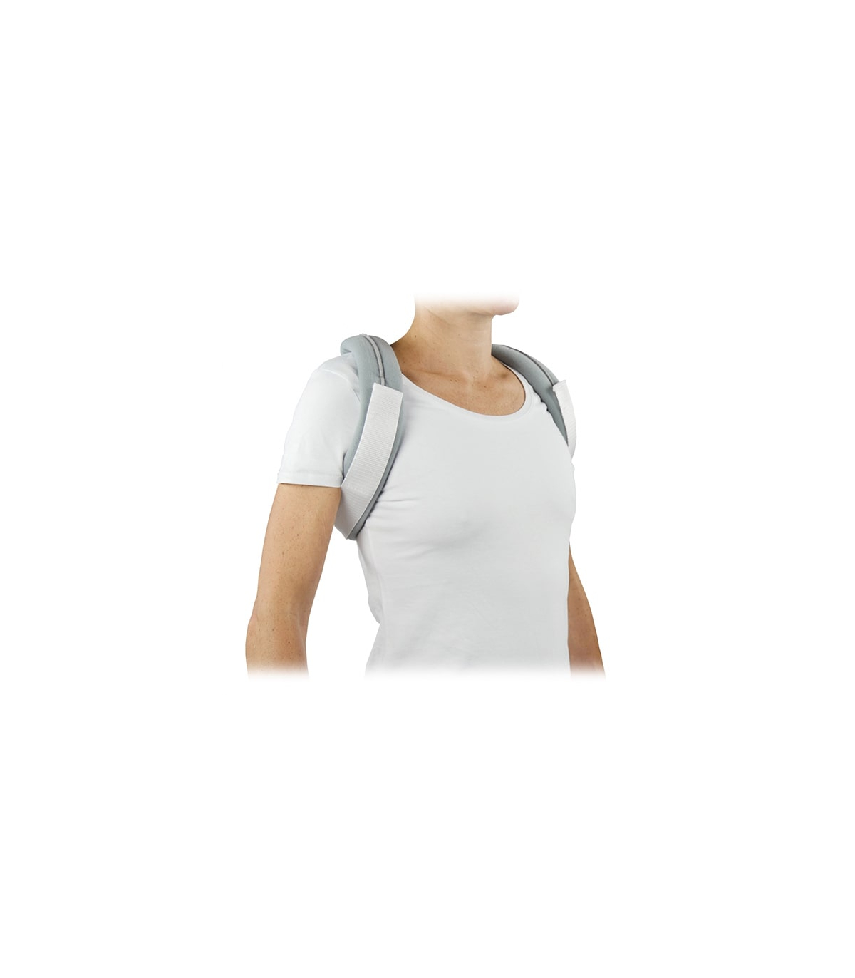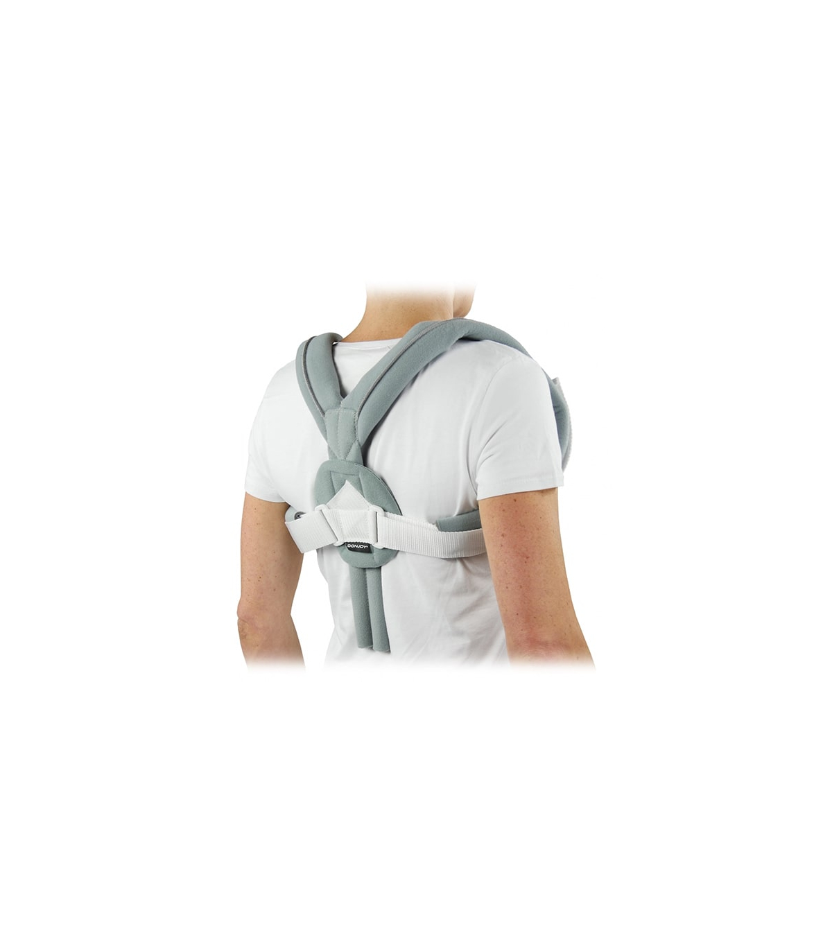 Elle comporte des sangles acromio-claviculaires avec un système d'attache dorsale par bandes auto-agrippantes.
