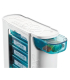 Les modules journaliers sont amovibles (dimensions d’un module : 13 cm × 4 cm × 2 cm) pour que vous puissiez emporter avec vous pour une journée complète de traitement.