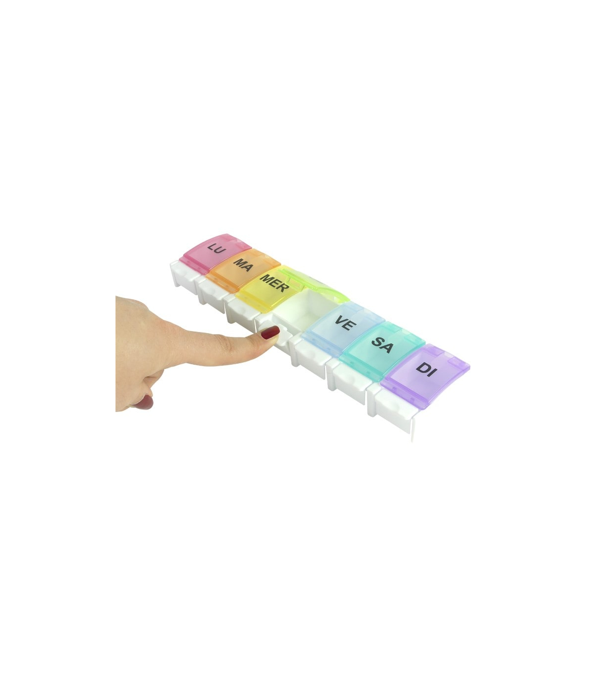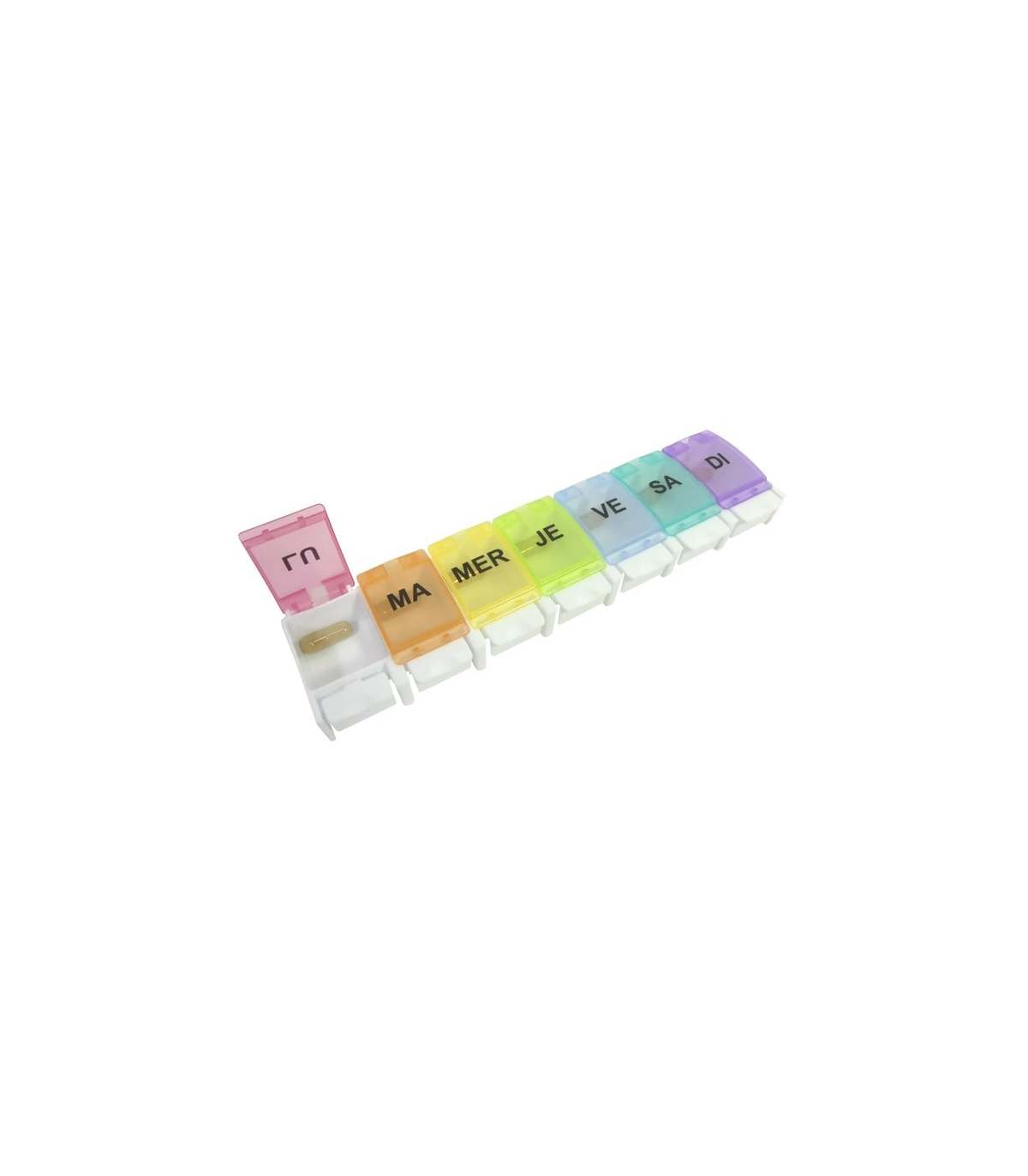 De plus, le pilulier Color est doté d’une fermeture sécurisée, chaque compartiment se fermant correctement afin d’éviter les ouvertures accidentelles et de protéger les médicaments et les comprimés.
