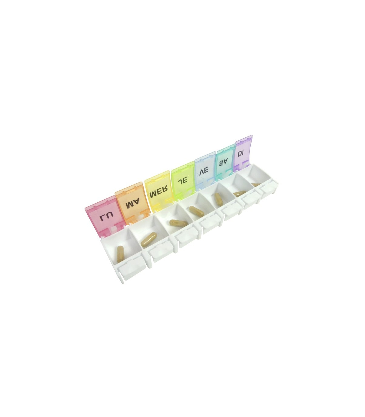 Ce produit possède 7 compartiments (1 par jour), ce qui facilite l’organisation des prises quotidiennes.