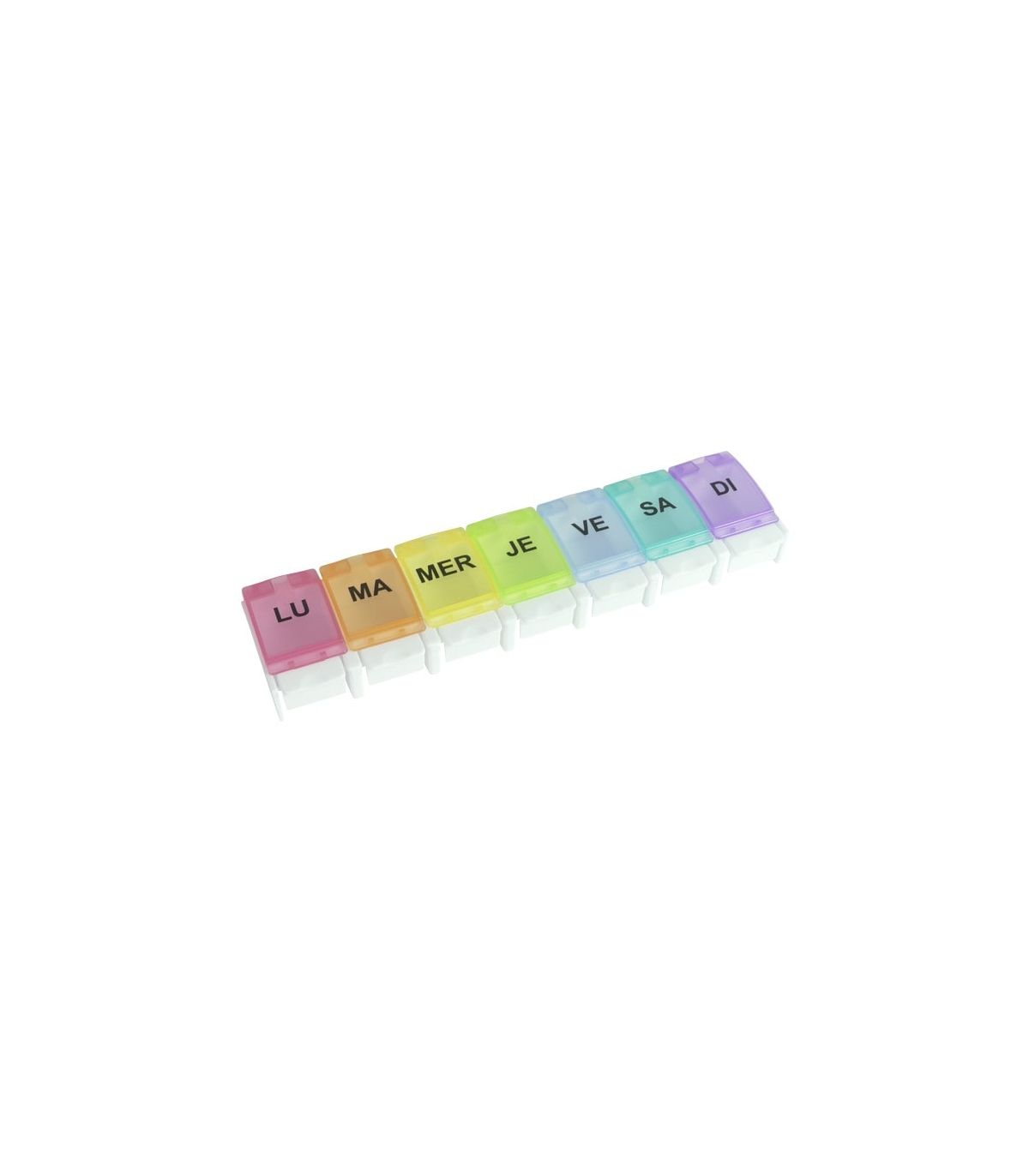 Le pilulier semainier est coloré et identifié par jour, ce qui permet une reconnaissance visuelle rapide et facile de chaque compartiment grâce au code couleur.