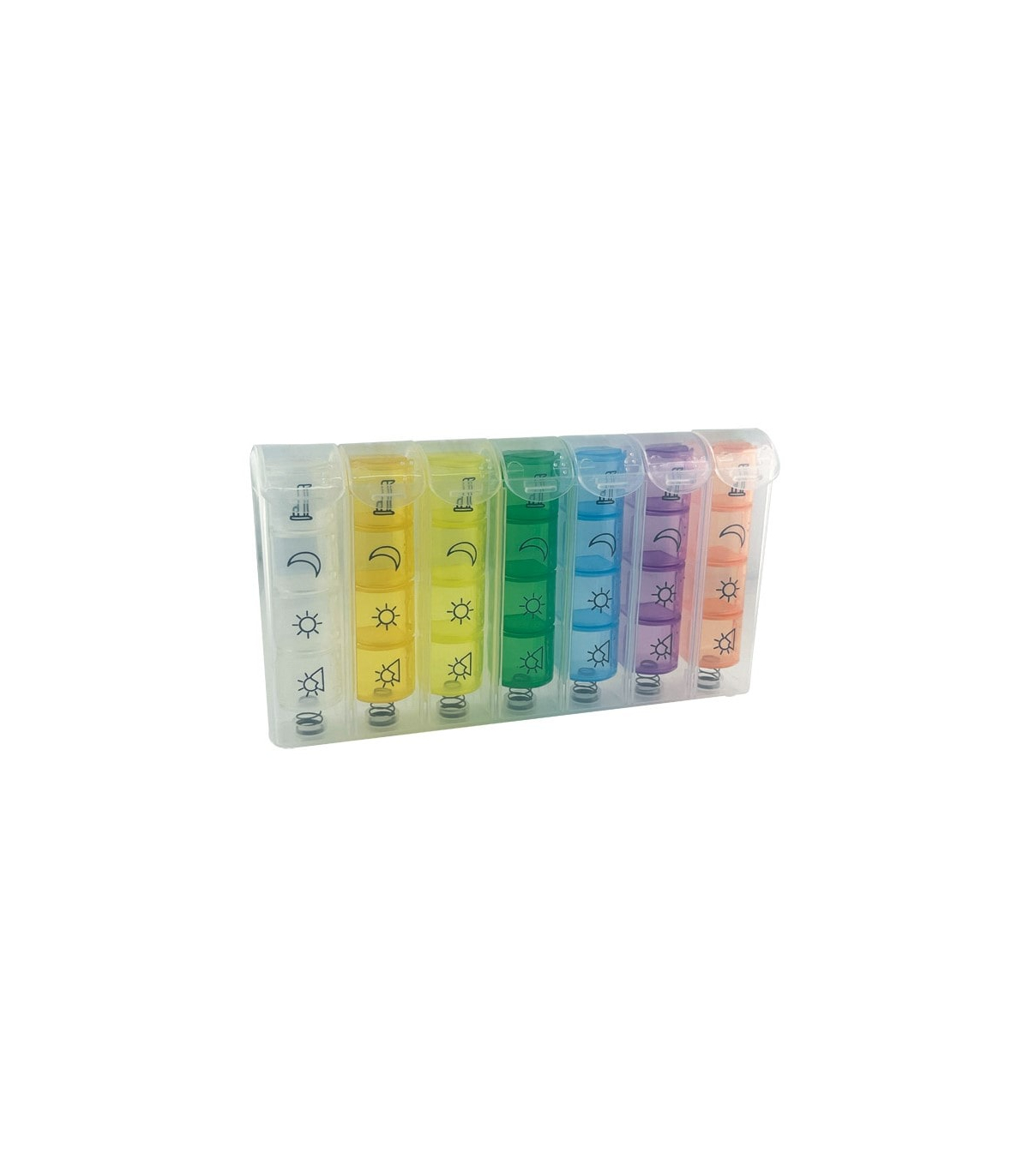 Le pilulier semainier multicolore Pop est un accessoire conçu pour organiser et sécuriser la prise de médicaments sur une semaine entière. Il est utile pour les personnes âgées, les malades chroniques ou toute personne suivant un traitement régulier. Ce pilulier sert à préparer à l’avance les comprimés ou gélules à prendre chaque jour et à chaque moment de la journée (matin, midi, soir, coucher).
