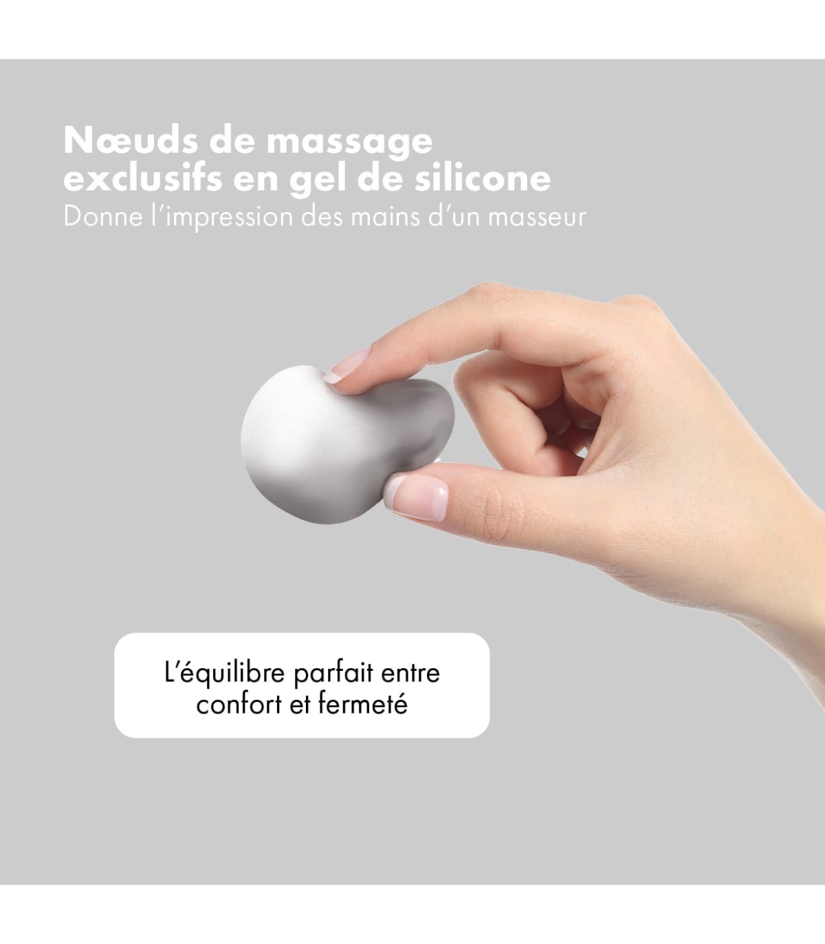 Les billes de massage utilisées dans le Himalaya sont fabriquées en siliconfort Gel, un matériau souple qui reproduit la sensation d’un massage manuel. Contrairement aux billes classiques dures, ces billes apportent une douceur de contact qui améliore considérablement le confort de la séance, tout en conservant l’efficacité du massage shiatsu.