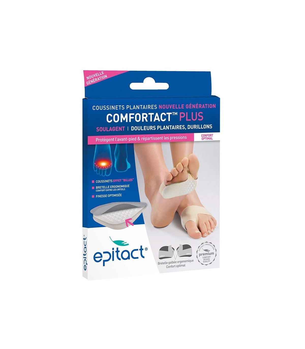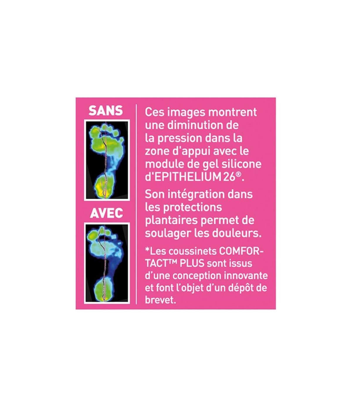 Les pieds sont soumis à une pression quotidienne lors de vos déplacements, ce qui peut entraîner des douleurs au niveau de la voûte plantaire, des échauffements ou encore des durillons. Les coussinets plantaires Comfortact Plus Epitact sont conçus pour soulager ces inconforts grâce à leur technologie innovante et leur module de gel en Epithelium 26, spécialement développé pour redistribuer les pressions sur la plante des pieds.