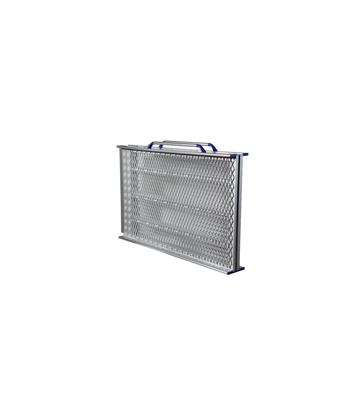 La surface de la rampe est perforée pour offrir un meilleur grip et éviter tout risque de glissade, même en présence de pluie, neige ou boue. Ces perforations permettent aussi un écoulement fluide de l’eau et des débris, assurant une surface de passage toujours propre et stable.