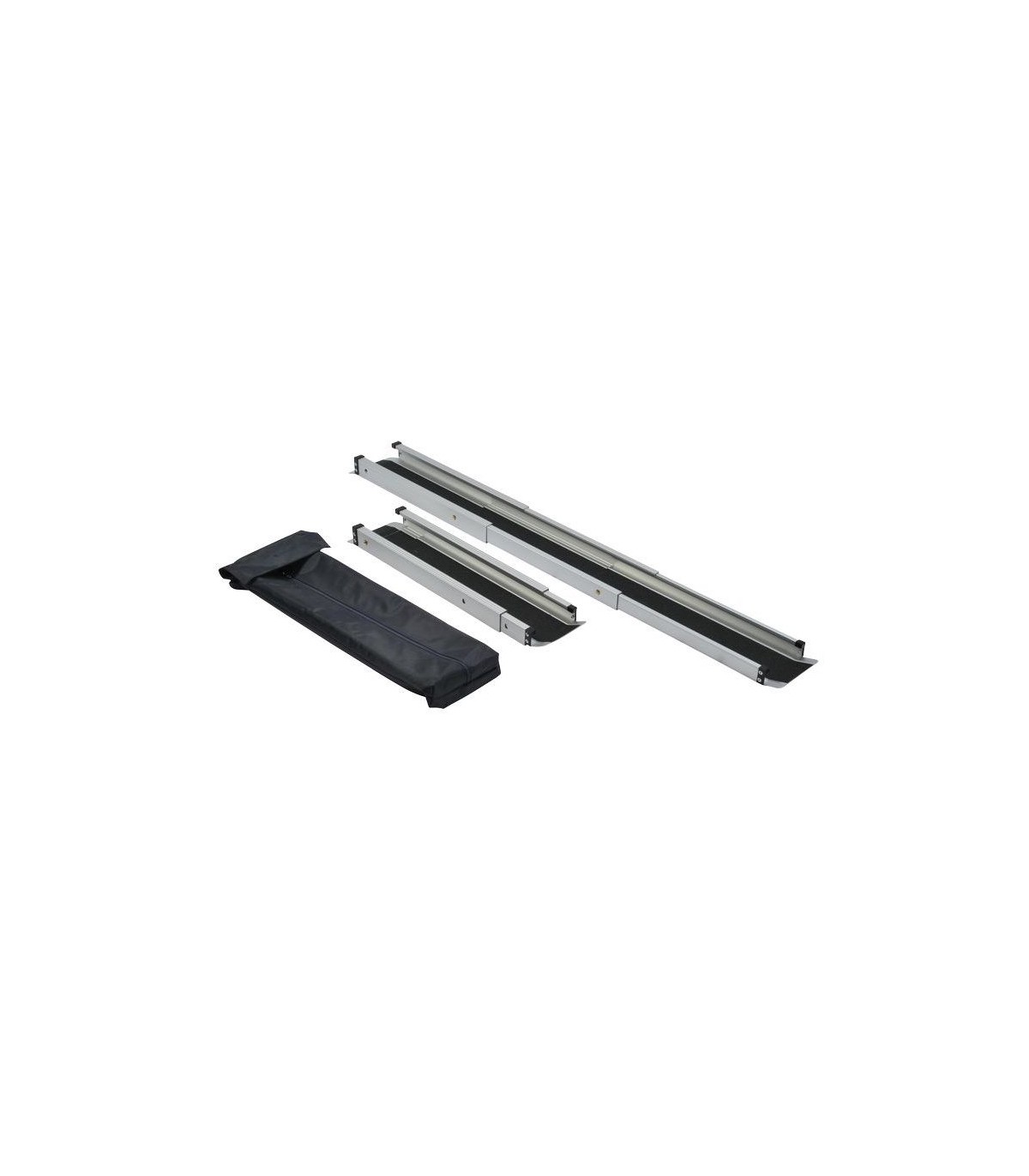 Le système en trois parties rend cette rampe pliable très pratique pour le rangement ou le transport. Livrée avec un sac de transport solide et compact, elle est parfaite pour un usage ponctuel ou en mobilité. Que vous l’utilisiez chez vous, en clinique ou lors de vos déplacements, la paire de rampes télescopiques Eco offre une solution fiable et accessible.