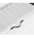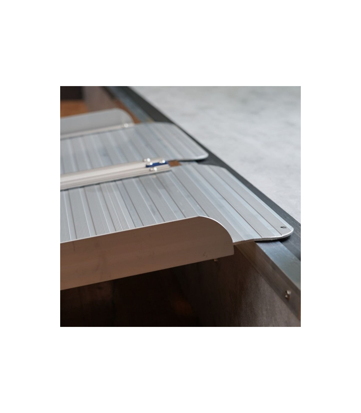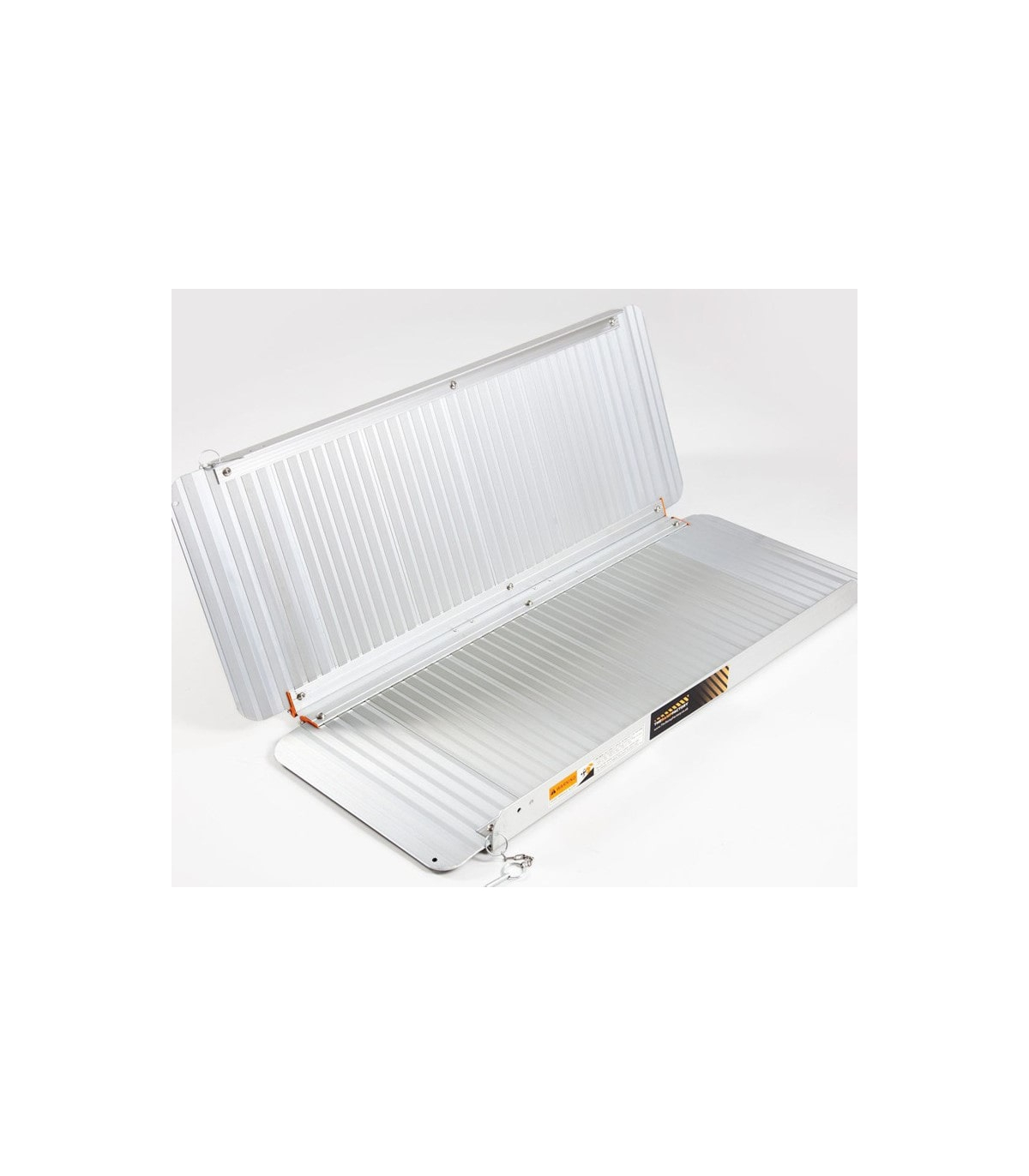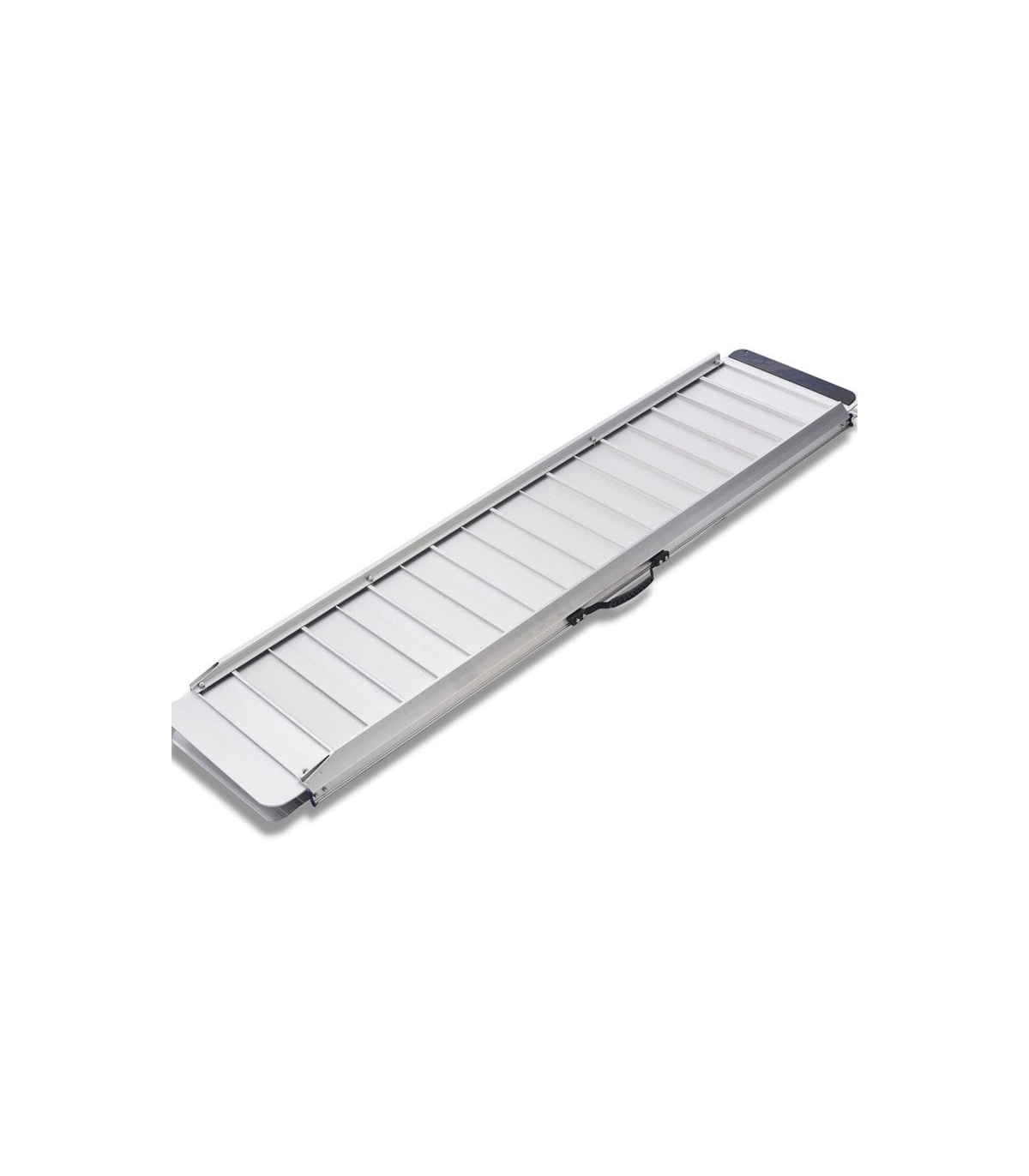 La rampe pour personne en fauteuil roulant Eco est conçue avec une structure double piste reliée par des charnières en acier, permettant un pliage rapide en deux parties. Une fois refermée, elle devient compacte et se transporte facilement grâce à sa poignée intégrée. Pour éviter toute ouverture accidentelle pendant le transport, les deux parties amovibles sont sanglées. Les modèles de grande longueur (213 et 244 cm) intègrent en plus une bavette d’appui renforcée et une poignée métallique robuste, améliorant la stabilité lors de la pose et le confort de manipulation.