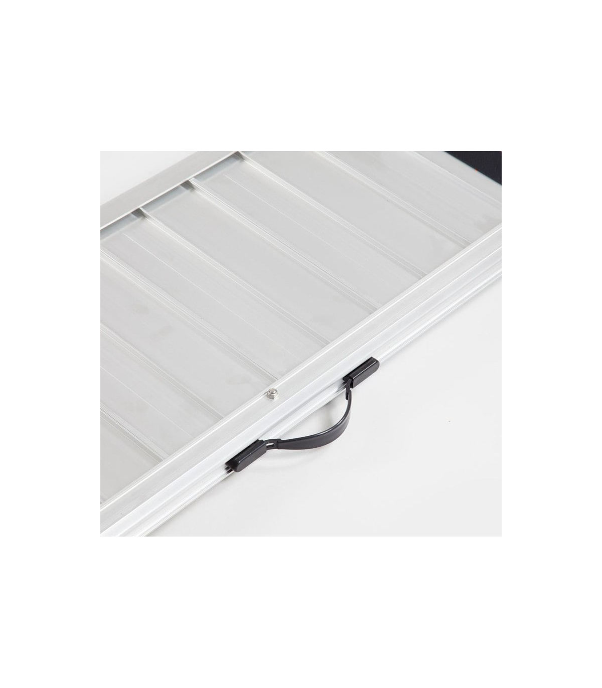La structure de la rampe est fabriquée en aluminium anodisé. Ce matériau offre un rapport poids/résistance exceptionnel : Il reste suffisamment léger pour être transporté facilement tout en supportant une charge maximale de 300 kg. Selon la longueur choisie, le poids de la rampe varie de 5 à 23 kg, permettant une manipulation aisée sans compromettre sa robustesse.