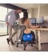 De plus, il est possible de régler la hauteur d'assise en fonction du gonflage du ballon et de la mise en place des rehausseurs (44 à 54 cm). Pour cela, il suffit de fixer les rehausseurs sur le socle puis de remettre les roulettes au-dessus.
