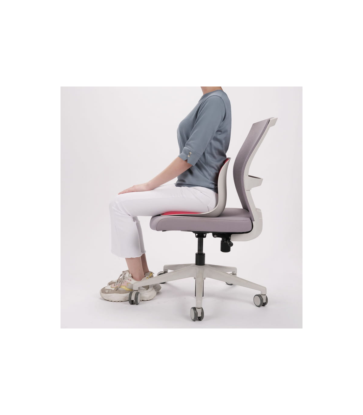 Grâce à un mécanisme de type levier intégré, l'assise ergonomique soulève légèrement le coccyx et encourage une position plus droite, ce qui aide à réduire la pression sur le bas du dos et à corriger la posture.