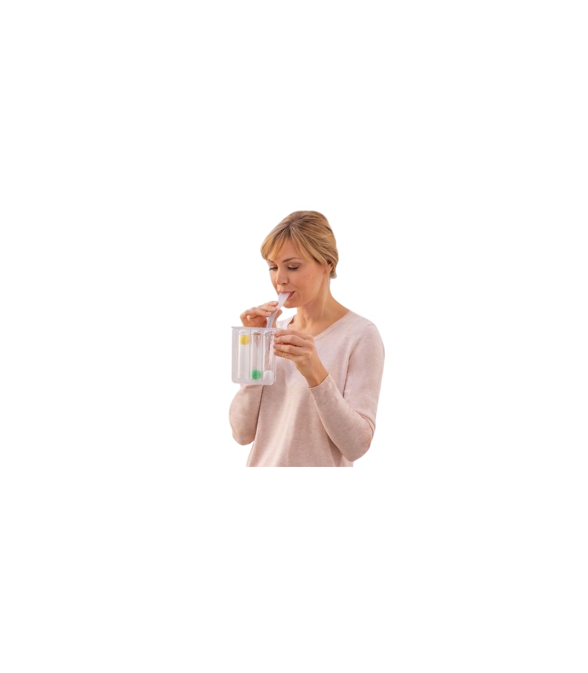 Le spiromètre incitatif appelé aussi "exerciseur pulmonaire" est un outil essentiel pour assurer un entraînement respiratoire quotidien grâce à des exercices simples et efficaces. Conçu pour améliorer la capacité pulmonaire, il permet de travailler à la fois l'inspiration et l'expiration, offrant ainsi une approche complète pour renforcer la fonction respiratoire.