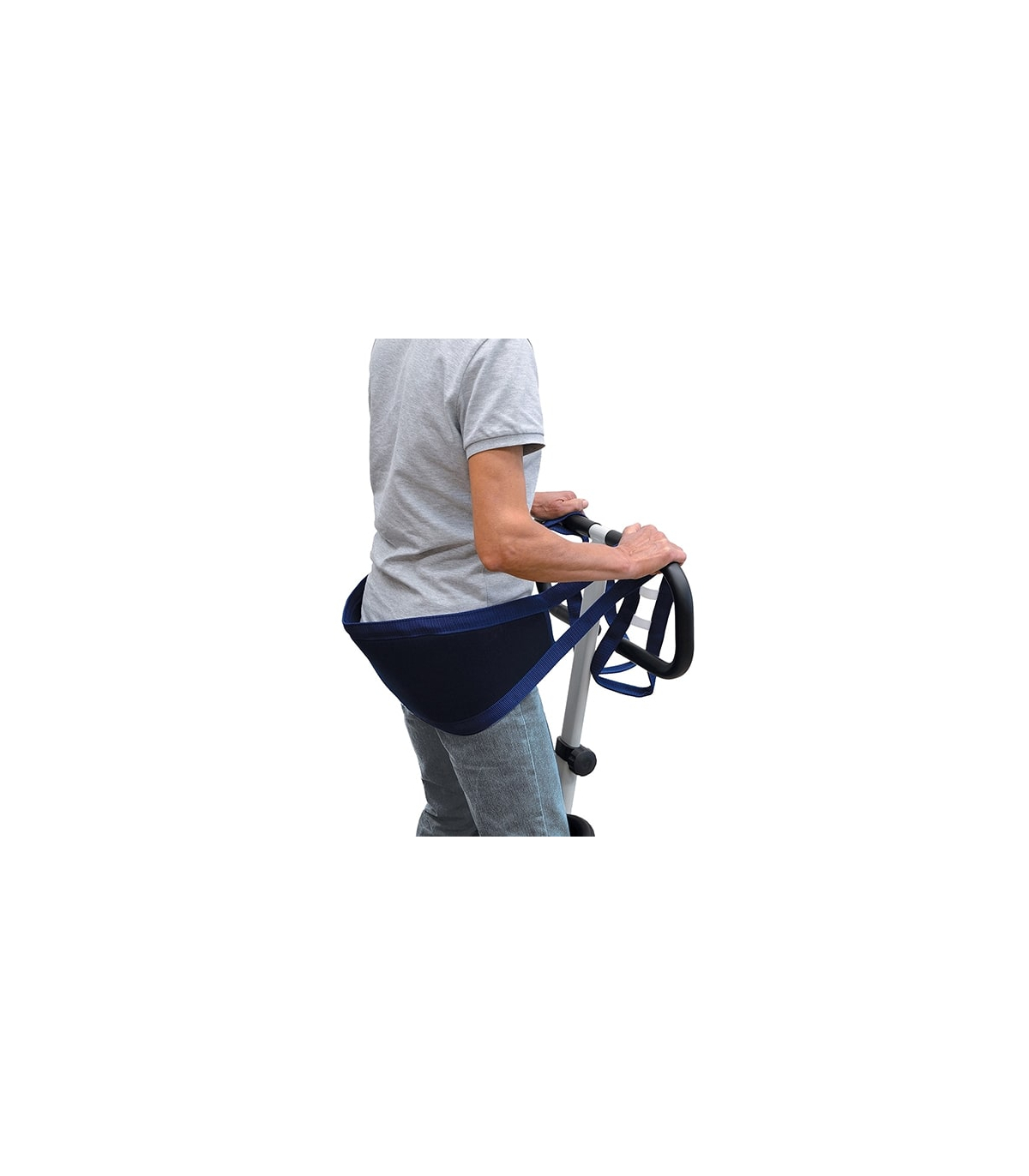 Celle-ci se positionne au niveau du dos ou des hanches pour faciliter la verticalisation en position debout.