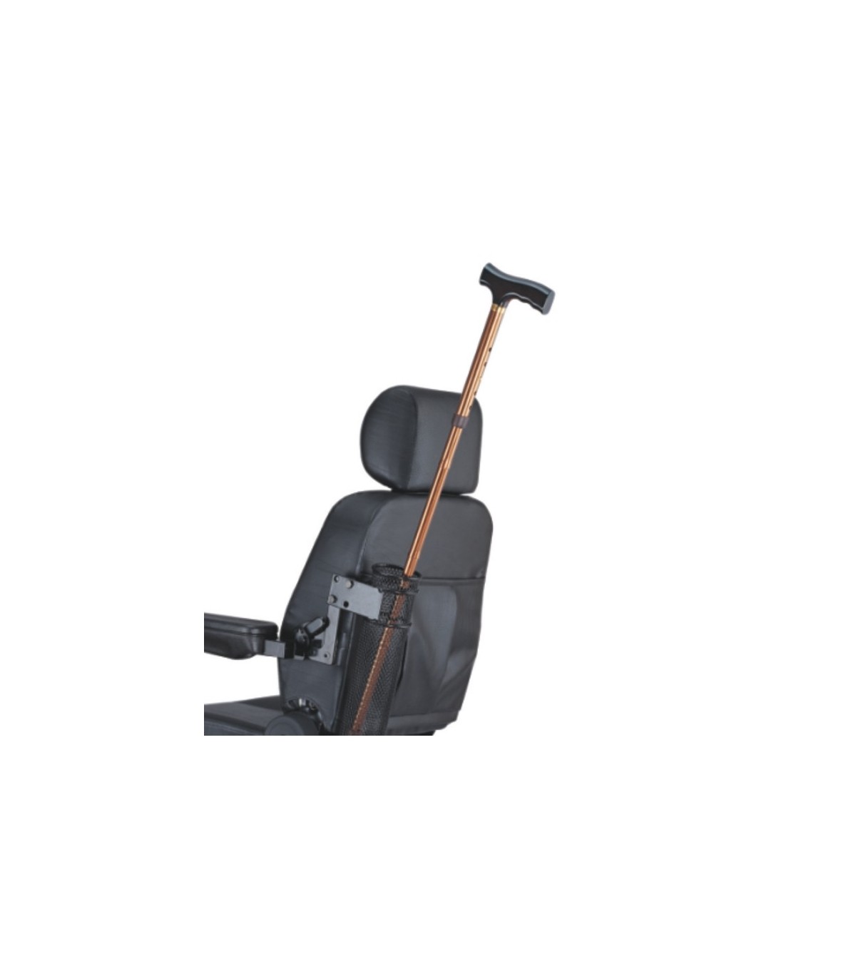 - Porte canne: Se présentant sous forme d'un fourreau d'environ 10 cm de diamètre et 40 cm de haut, vous pouvez y glisser une canne de marche, une paire de cannes anglaises, un parapluie... Sa fixation latérale facilite son accès.