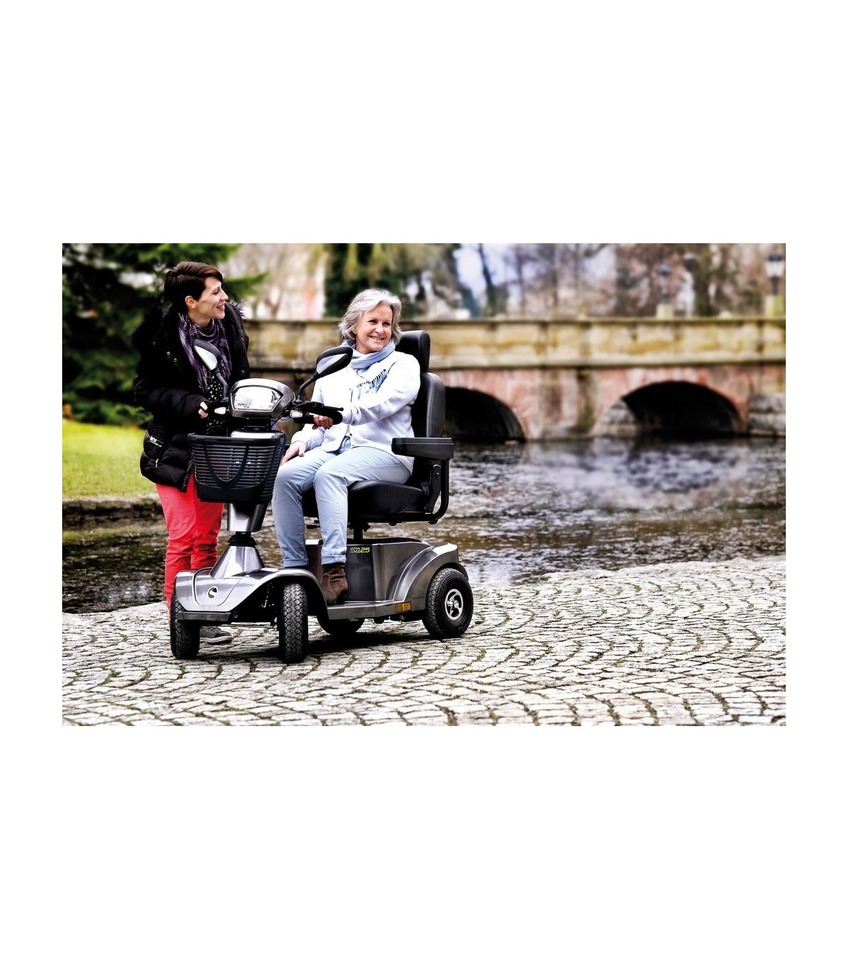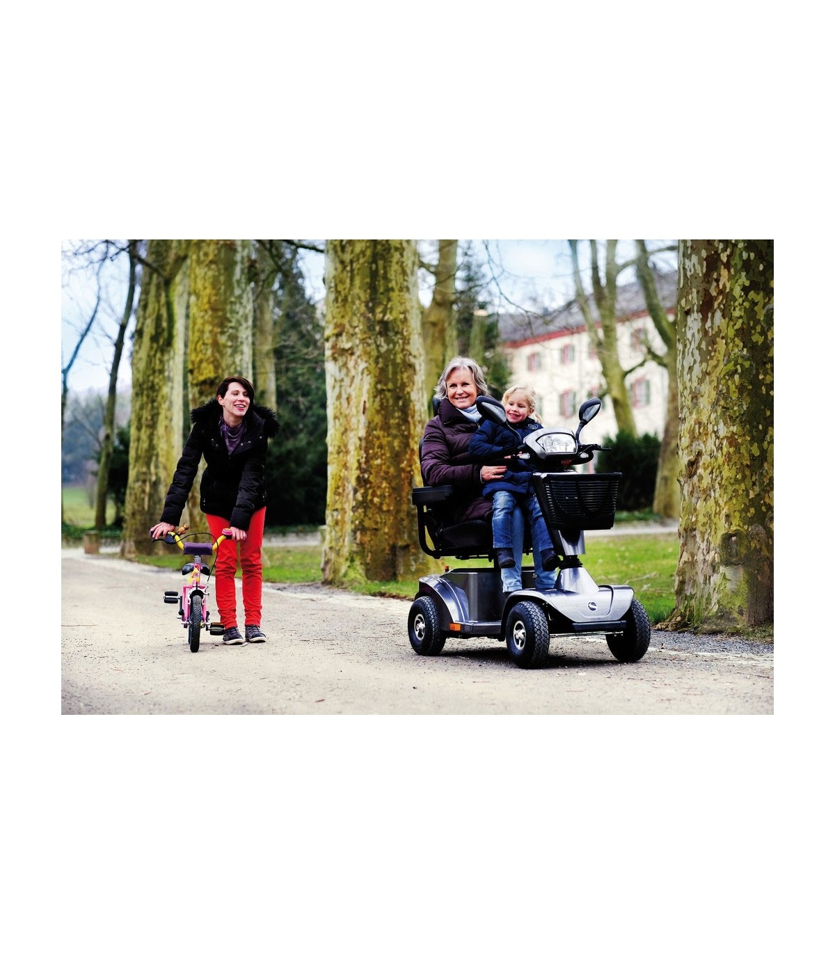 Le scooter électrique 4 roues Sterling S425 de chez Sunrise Médical est conçu pour favoriser la mobilité des personnes à mobilité réduite. Il permet à l’utilisateur de réaliser des trajets en extérieur, à une allure modérée. Ce produit sera le compagnon idéal pour aller faire vos courses au supermarché, circuler dans un centre commercial, vous déplacer en centre-ville ou encore vous promener en forêt.