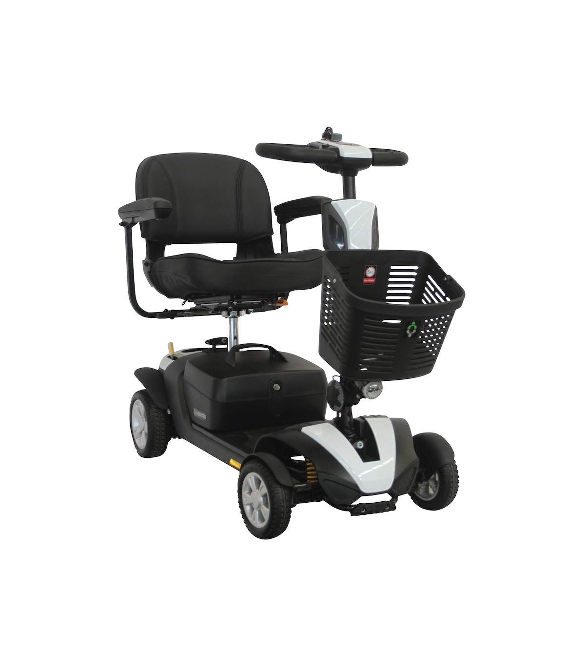 Pour assurer un confort optimal au patient, le scooter électrique 4 roues dispose de suspensions avant et arrière. Cela permet d’amortir les chocs rencontrés avec l’appareil notamment lorsqu’il passe sur une bordure.