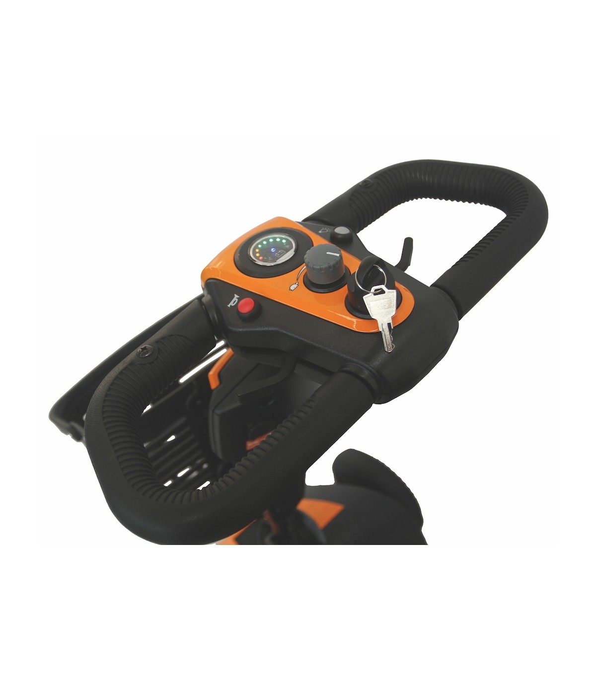 Afin de limiter au maximum le risque de chute, le scooter est équipé d’accoudoirs. Ils permettent à l’utilisateur de prendre appui lorsque celui-ci veut descendre du scooter. De plus, ils sont escamotables pour faciliter les transferts. La largeur d'assise est de 44cm.