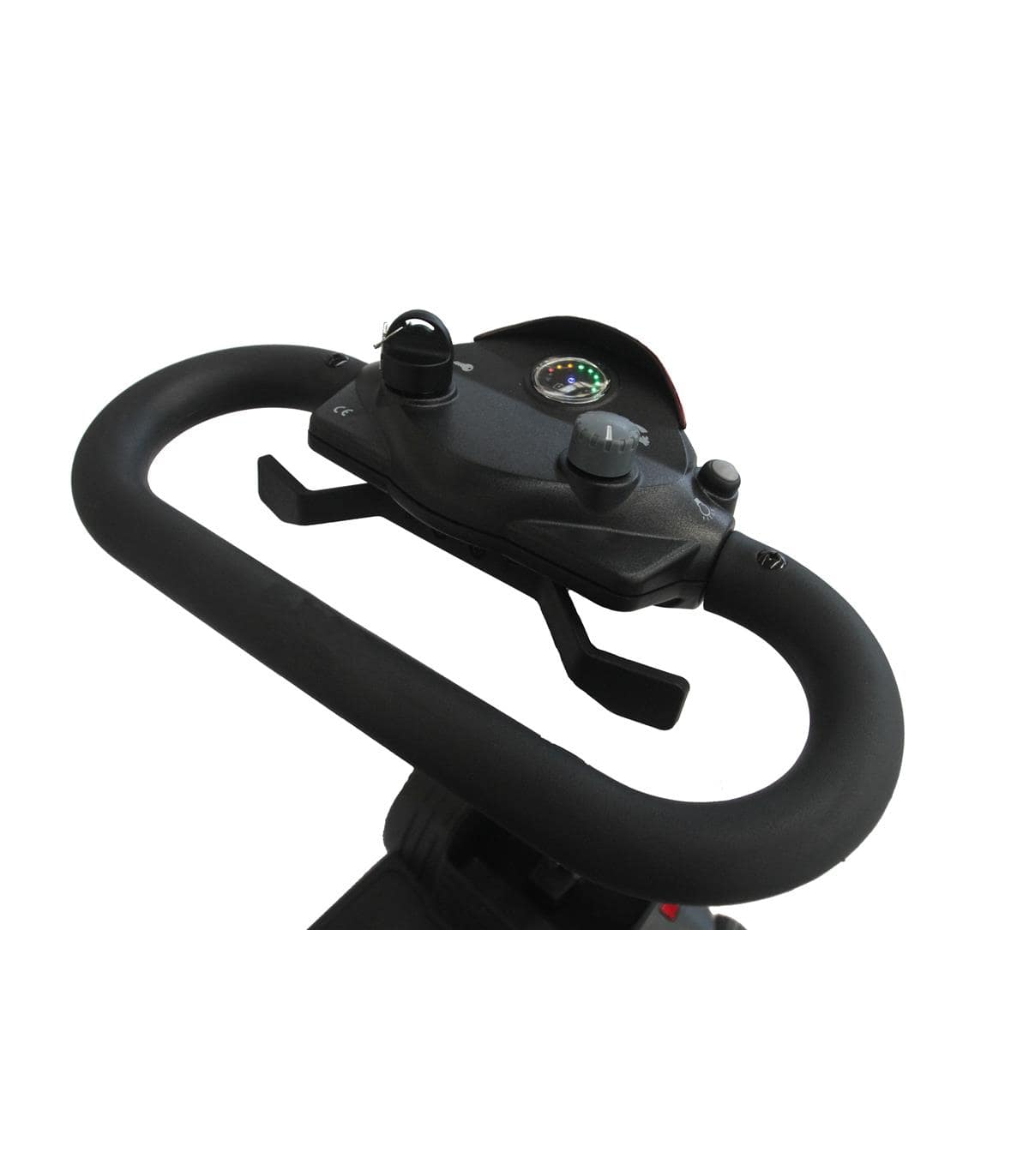 Le scooter électrique 4 roues de chez Medtrade comporte des accoudoirs escamotables, relevables et réglables en inclinaison, en largeur et en longueur.