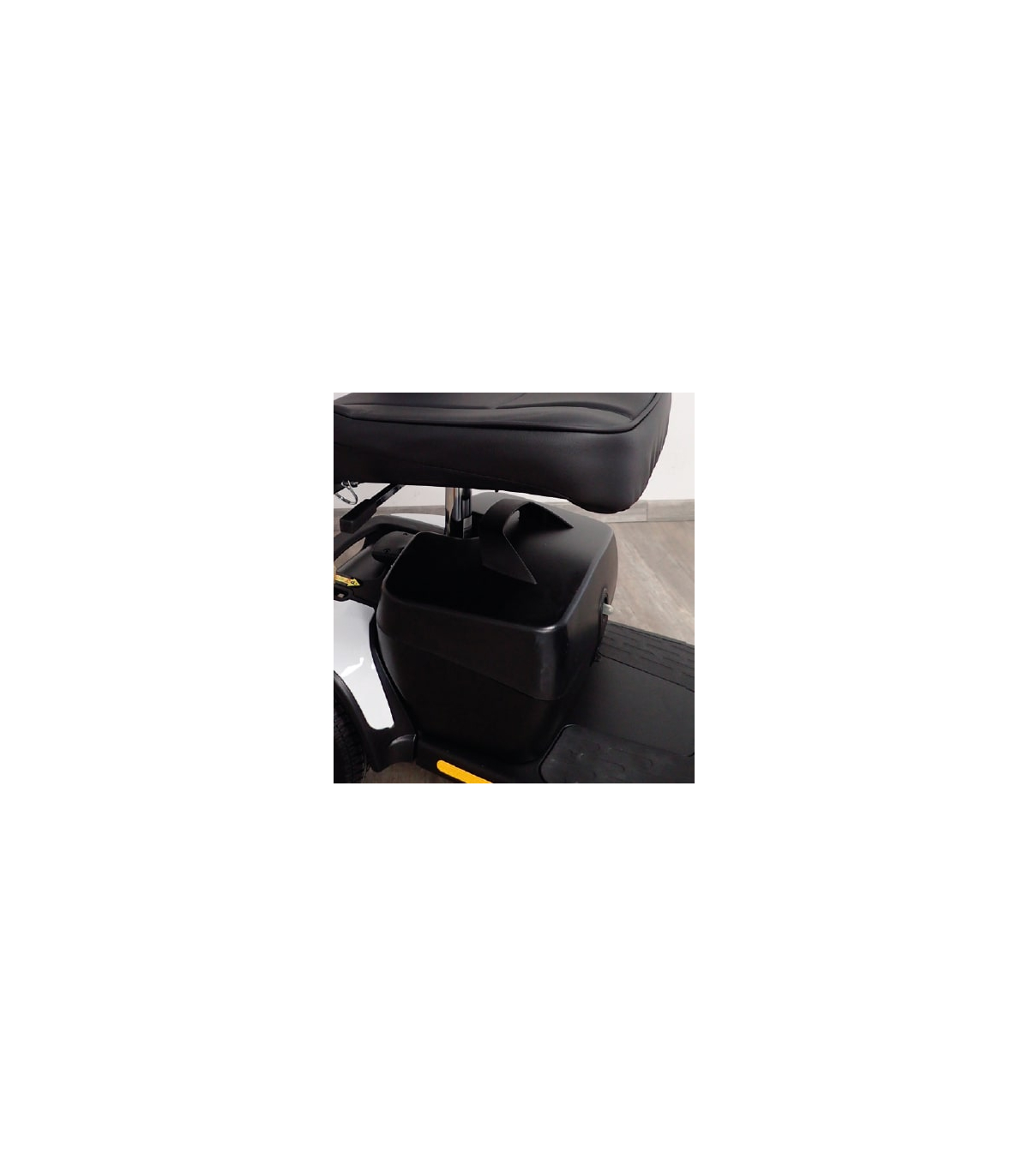 Il est possible de régler le fauteuil confort en hauteur sur 3 positions (tous les 2,5 cm) pour une parfaite adaptation à l'utilisateur. De plus, son fauteuil est également pivotant à 360° (cranté tous les 90°) pour faciliter l'embarquement. Assurez-vous que le fauteuil soit bien en position d verrouillage avant d’embarquer ou de descendre du scooter. De plus, le siège doit toujours être en position verrouillée face à l’avant du scooter lorsque vous roulez sur celui-ci.