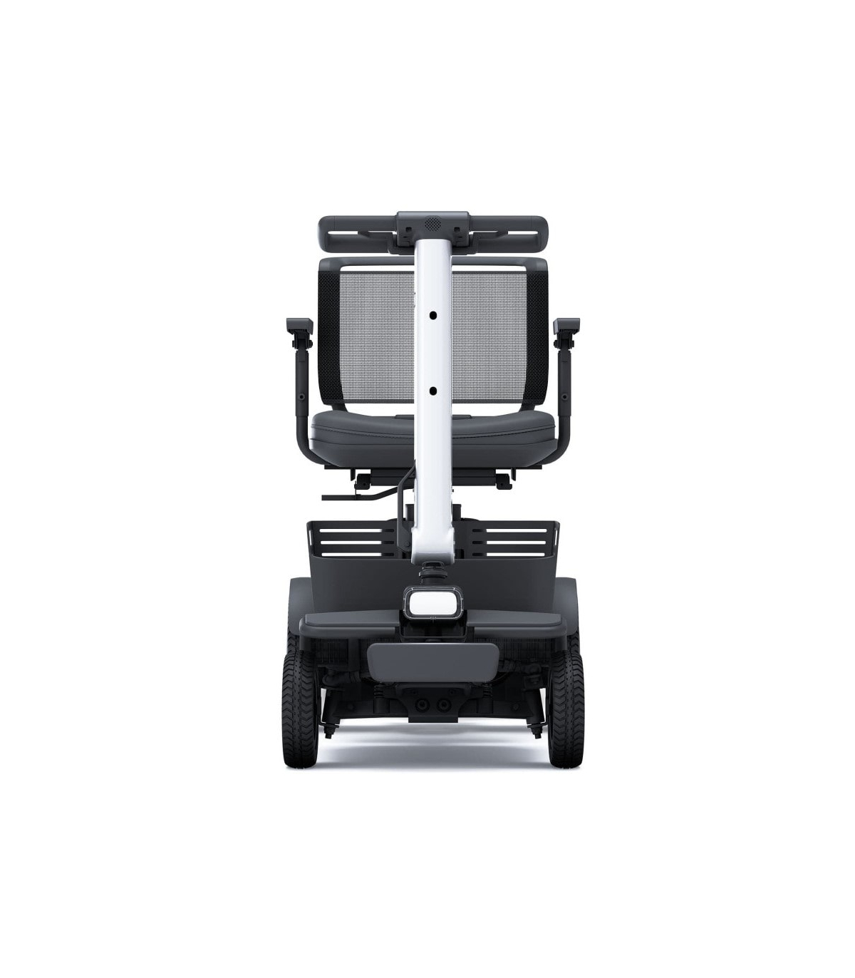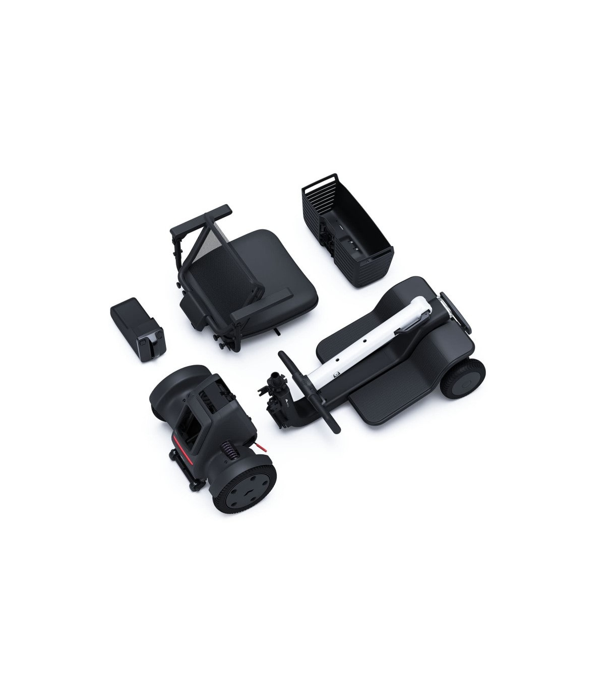 Le WHILL Model R peut être démonté en moins de 10 secondes sans outil, ce qui facilite considérablement le rangement et la livraison. Chaque pièce du produit a été conçue pour être solide, légère et maniable, ce qui en fait un scooter handicapé idéal pour les environnements urbains ou résidentiels exigus.