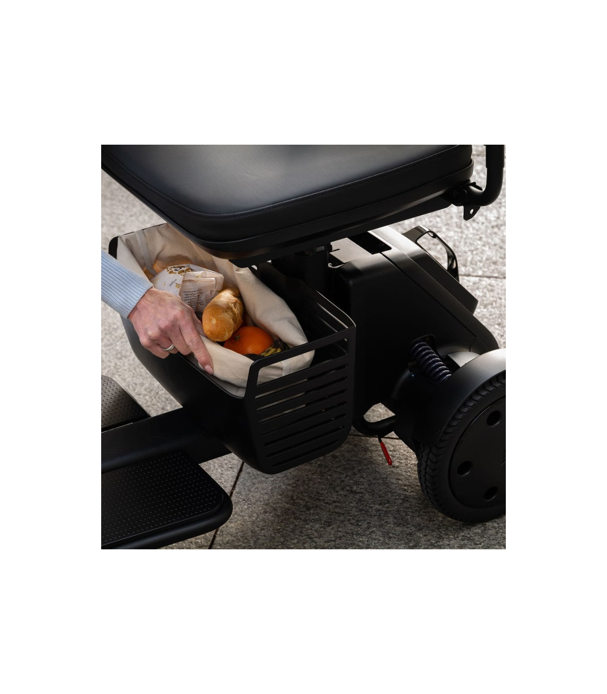 Le scooter électrique PMR est compatible avec l’application WHILL, qui permet de configurer les paramètres, suivre les performances et sécuriser le produit à distance. Plusieurs accessoires sont disponibles : panier de 15 litres, prise USB-C, coussins, pièces détachées, etc. Chaque détail du modèle est conçu pour améliorer l’expérience utilisateur et favoriser une autonomie prolongée.
