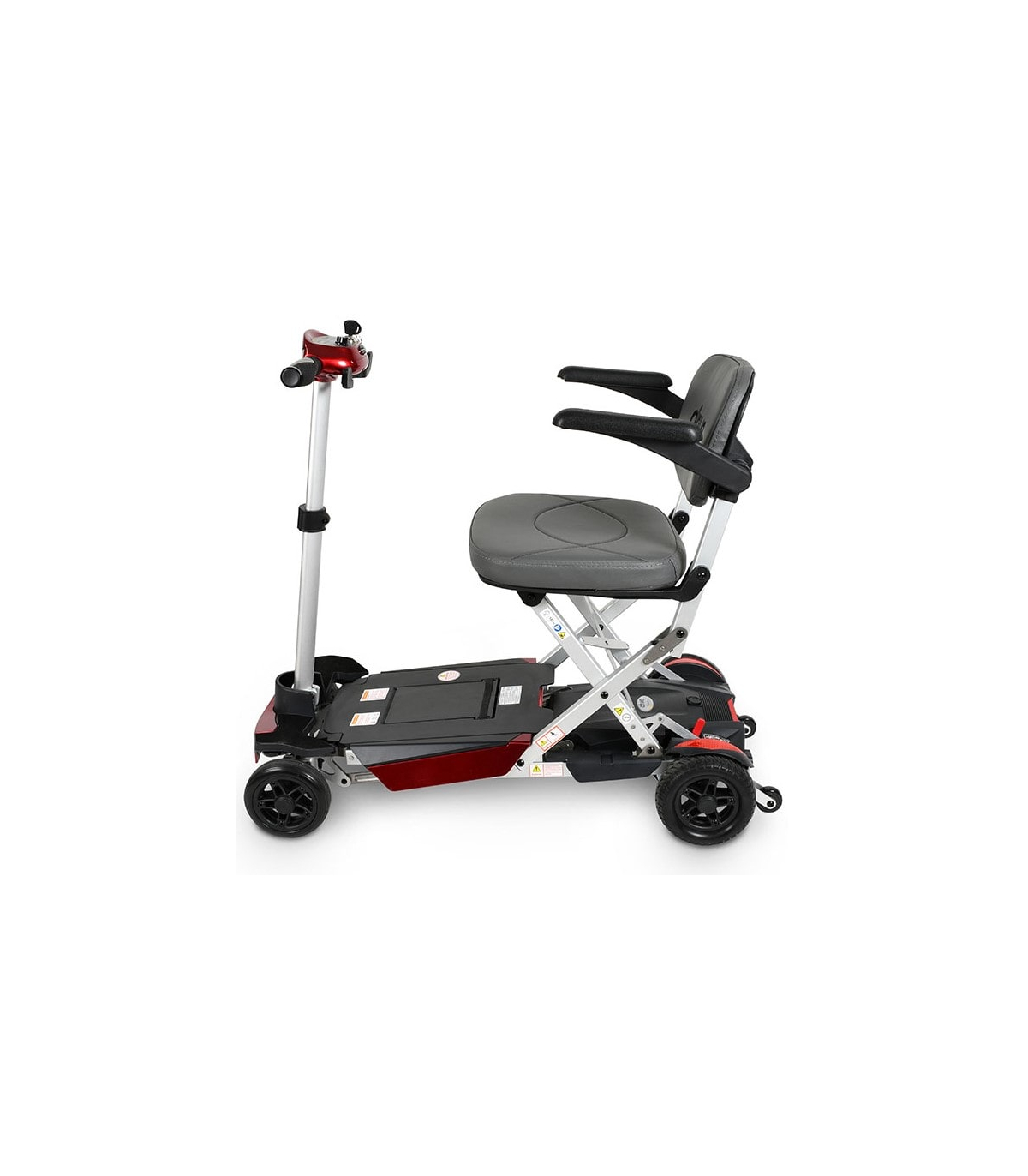 Le scooter senior Manual Fold + se distingue comme un scooter électrique pliant à structure manuelle, ce qui permet un pliage rapide, sans outils. Son format compact une fois plié permet un transport facile dans un coffre, un train ou un avion. Ce scooter roulant compact est parfaitement adapté aux utilisateurs qui ont besoin d’un matériel mobile et peu encombrant. Son système pliable est idéal pour les voyages, les sorties ou un rangement simple à la maison.