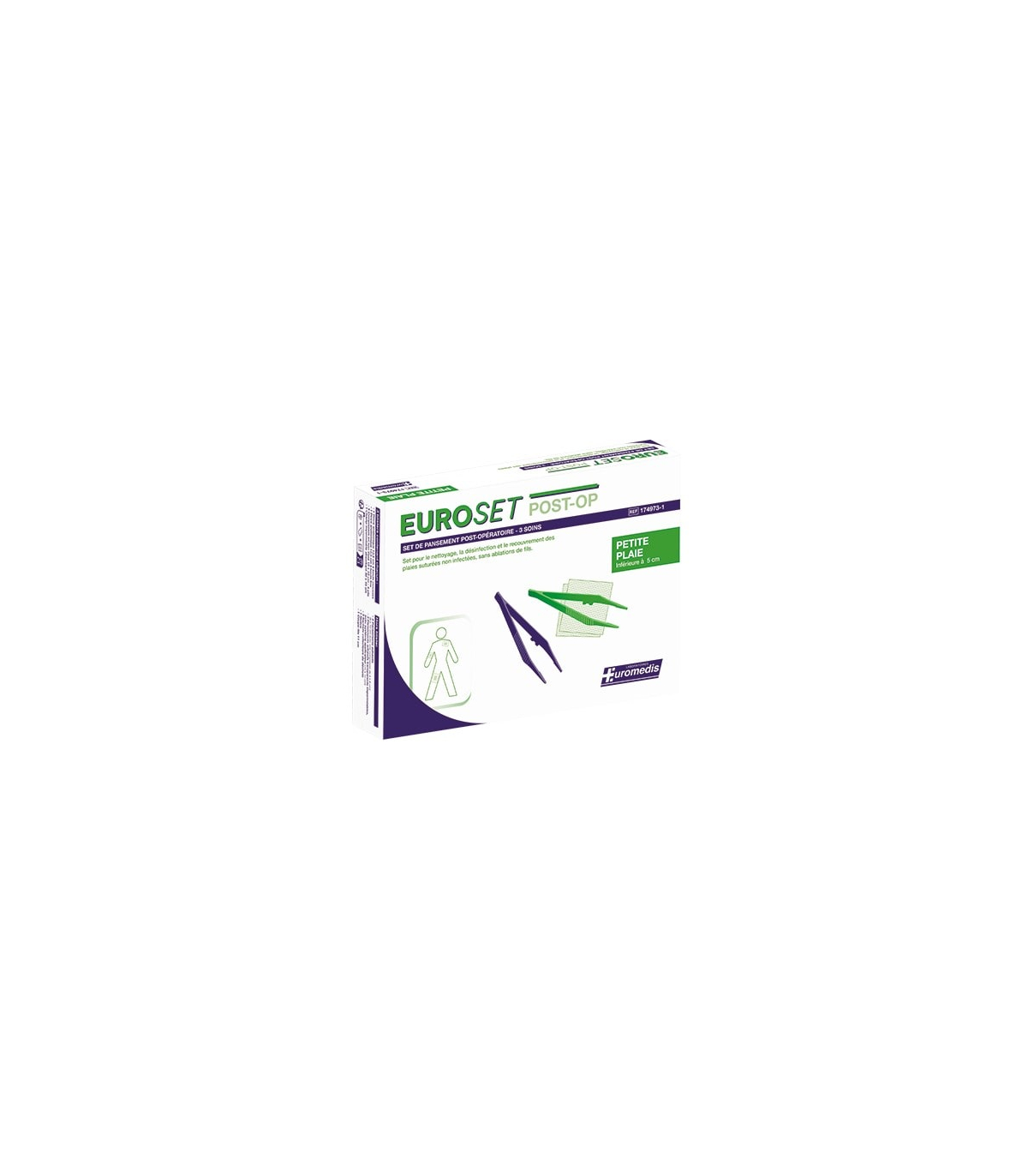 - Set Euroset “Petite Plaie” : Idéal pour les incisions légères, ce mediset comprend 3 pansements adhésifs avec compresse stérile 8 x 10 cm, 3 films adhésifs semi-perméables 10 x 12 cm, ainsi que 3 blisters rigides avec accessoires (compresses, pinces, champ imperméable).