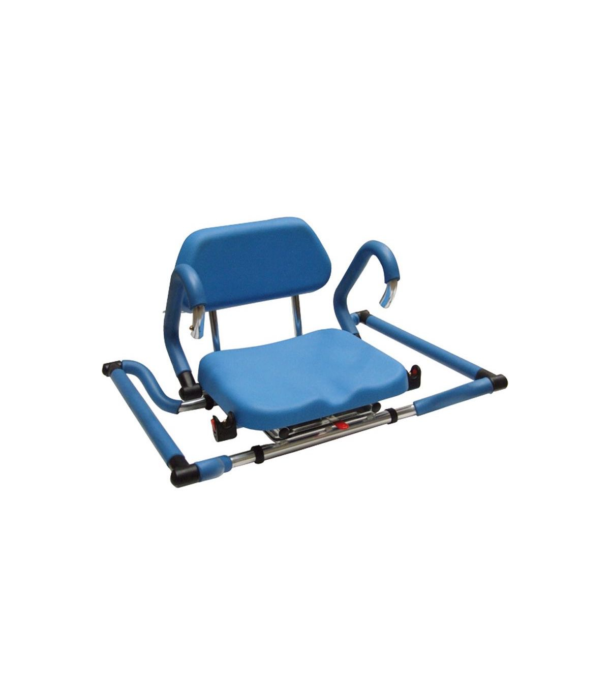 Le siège de bain pivotant comporte des accoudoirs relevables (hauteur 27,5 cm) pour plus de sécurité. De plus, les accoudoirs permettent à l'utilisateur de prendre appui pour se relever.