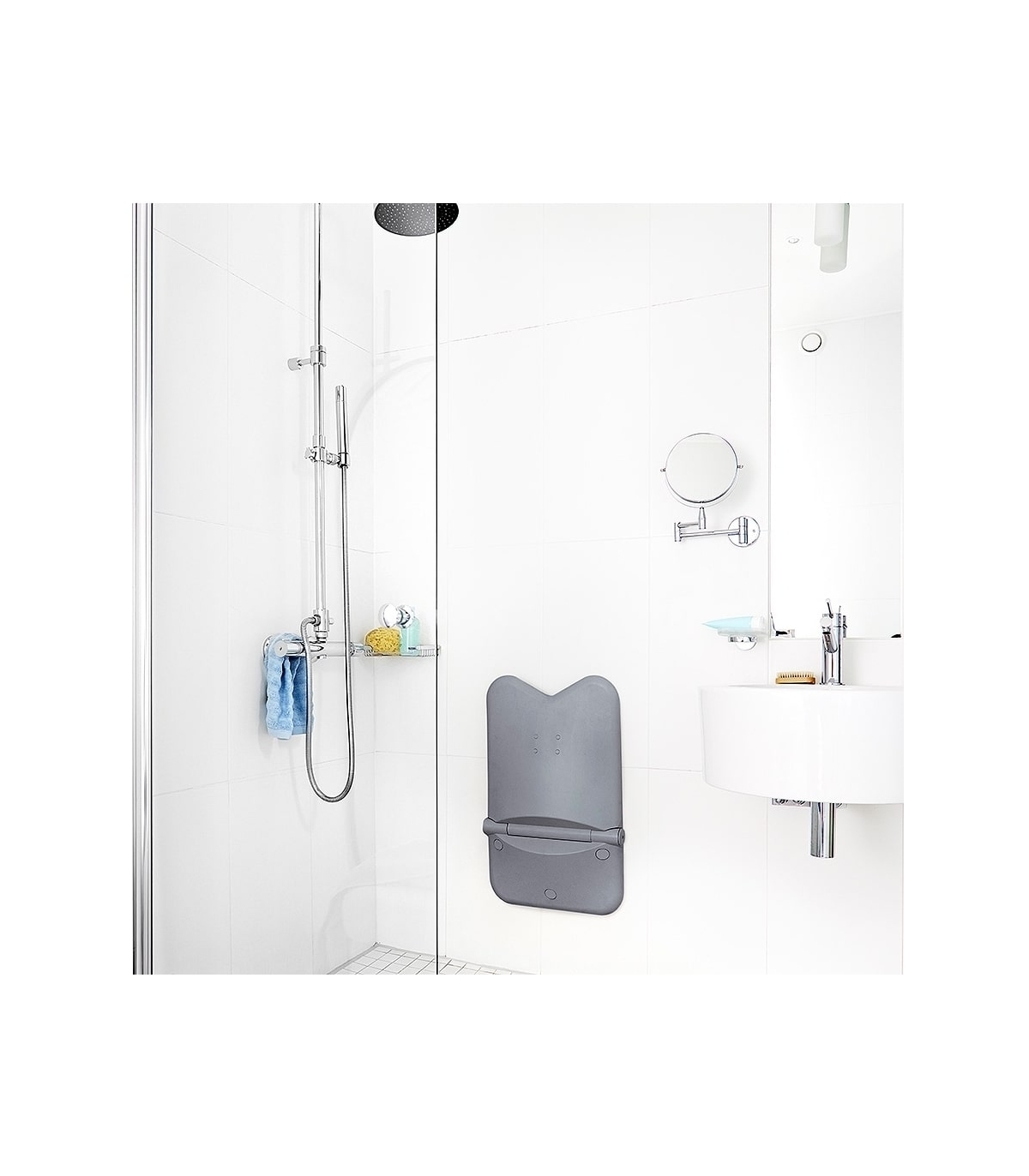 Grâce à son design scandinave et ses 2 coloris (blanc et gris), le siège de douche mural rabattable Etac Relax s'adaptera facilement à l'intérieur de votre salle de bain.