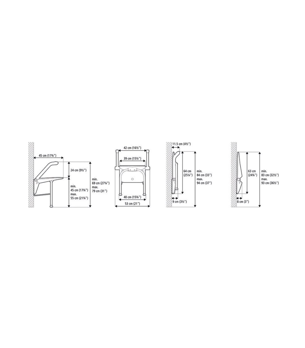 Les caractéristiques techniques du siège de douche mural rabattable Etac Relax